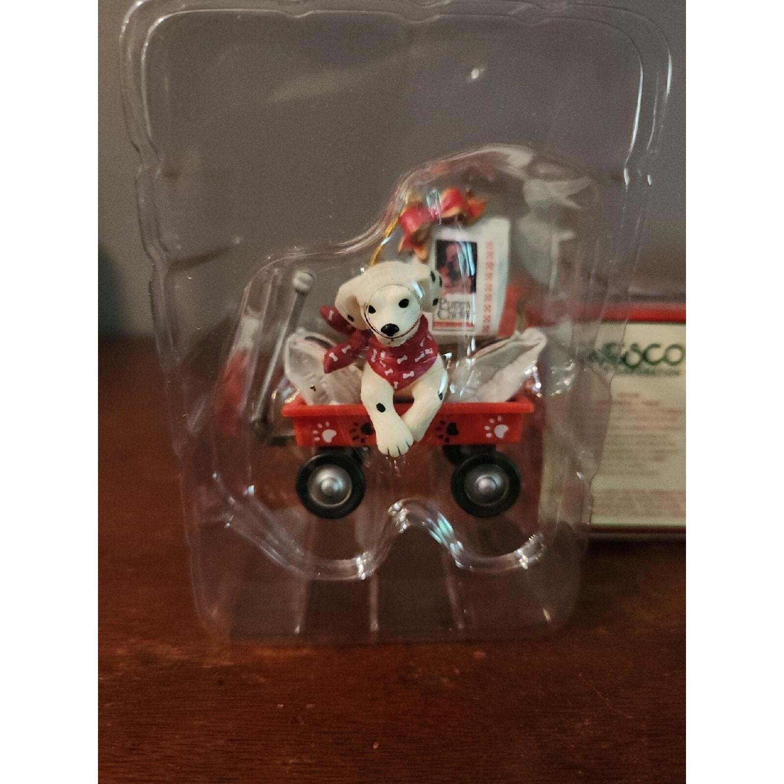 This playful 1996 Enesco ornament features a cheery Dalmatian puppy perched in a bright red wagon overflowing with bags of Purina Puppy Chow—perfectly combining pet-theme charm, nostalgic branded design and festive holiday appeal. Crafted in hand-painted molded plastic (ArtPlas style) with crisp sculpting and vivid colour finish, it stands out as a collector’s piece for dog-lovers, brand-edition ornament hunters and vintage holiday décor fans. Whether for a tree, pet-themed display or branded ornament collection, this piece delivers charm and collectible quality.