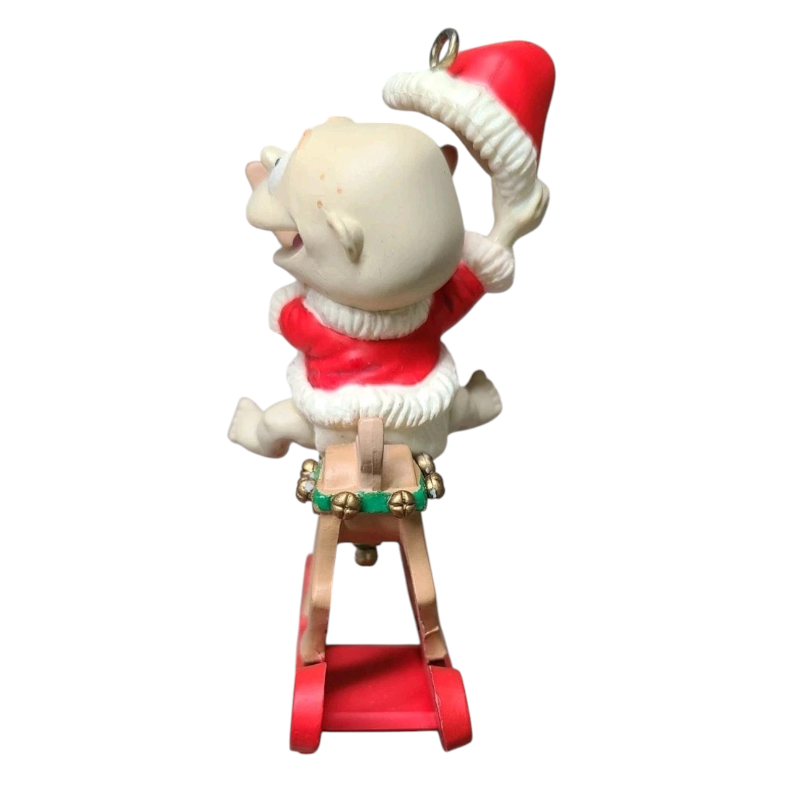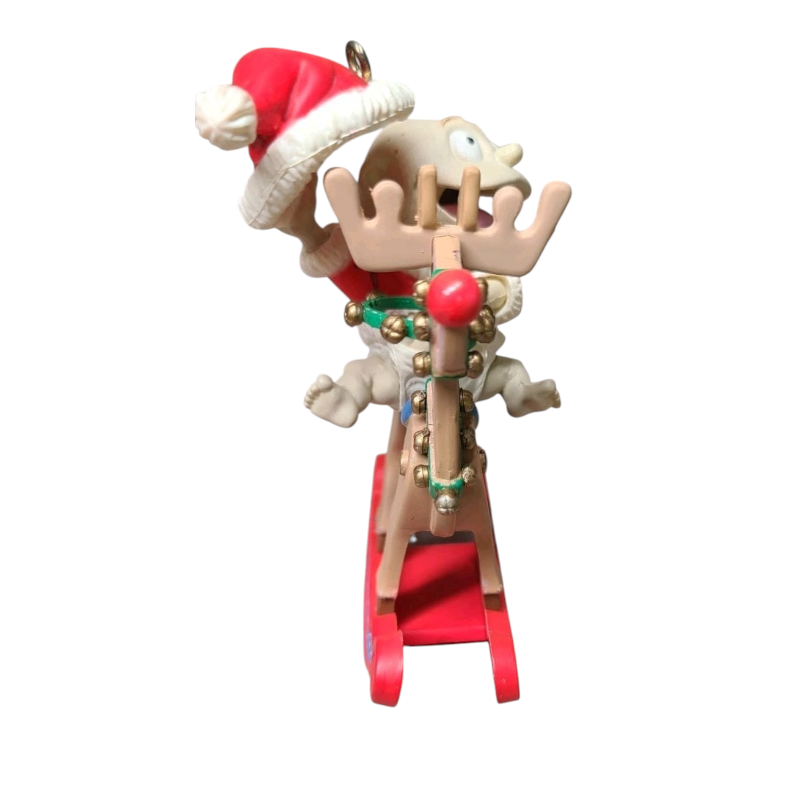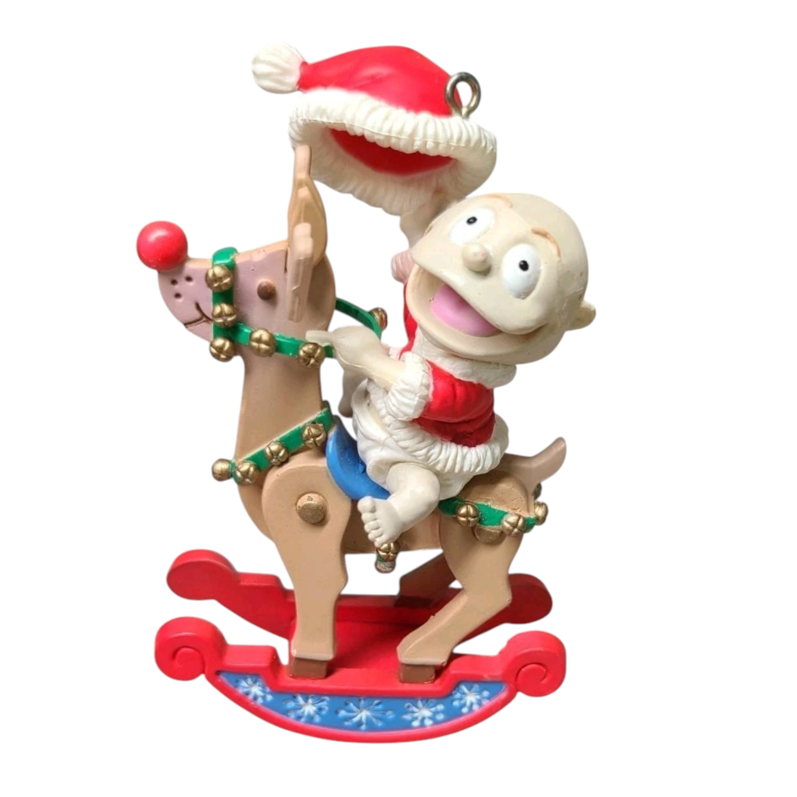 This fun collector-ornament from Carlton Cards’ 1996 Heirloom line captures the beloved Rugrats character Tommy in a holiday-themed “Christmas Adventure” scene. The design features Tommy the baby controlling the holiday antics (sleigh, snow, gift, etc.) with vibrant colors and playful detailing that appeal to fans of 90s animation and pop-culture holiday décor. Crafted in resin or molded plastic with a bright finish and original packaging, its dated motif and TV-tie-in theme give it special appeal for both ornament collectors and Rugrats enthusiasts. The theme of adventure plus nostalgic character makes it a standout vintage piece for any tree or display.