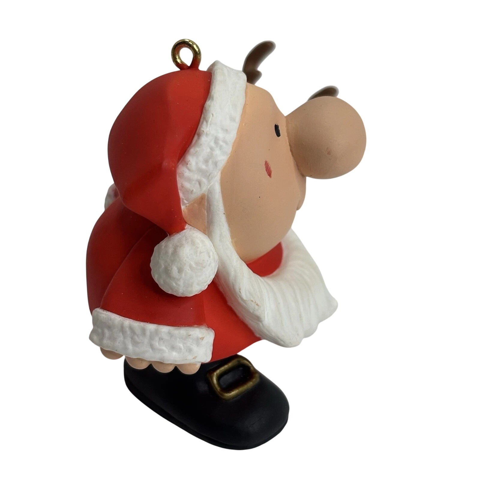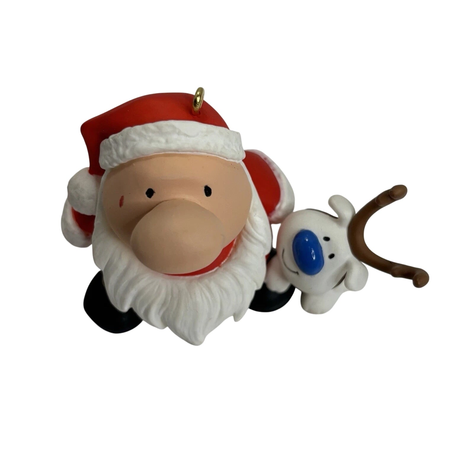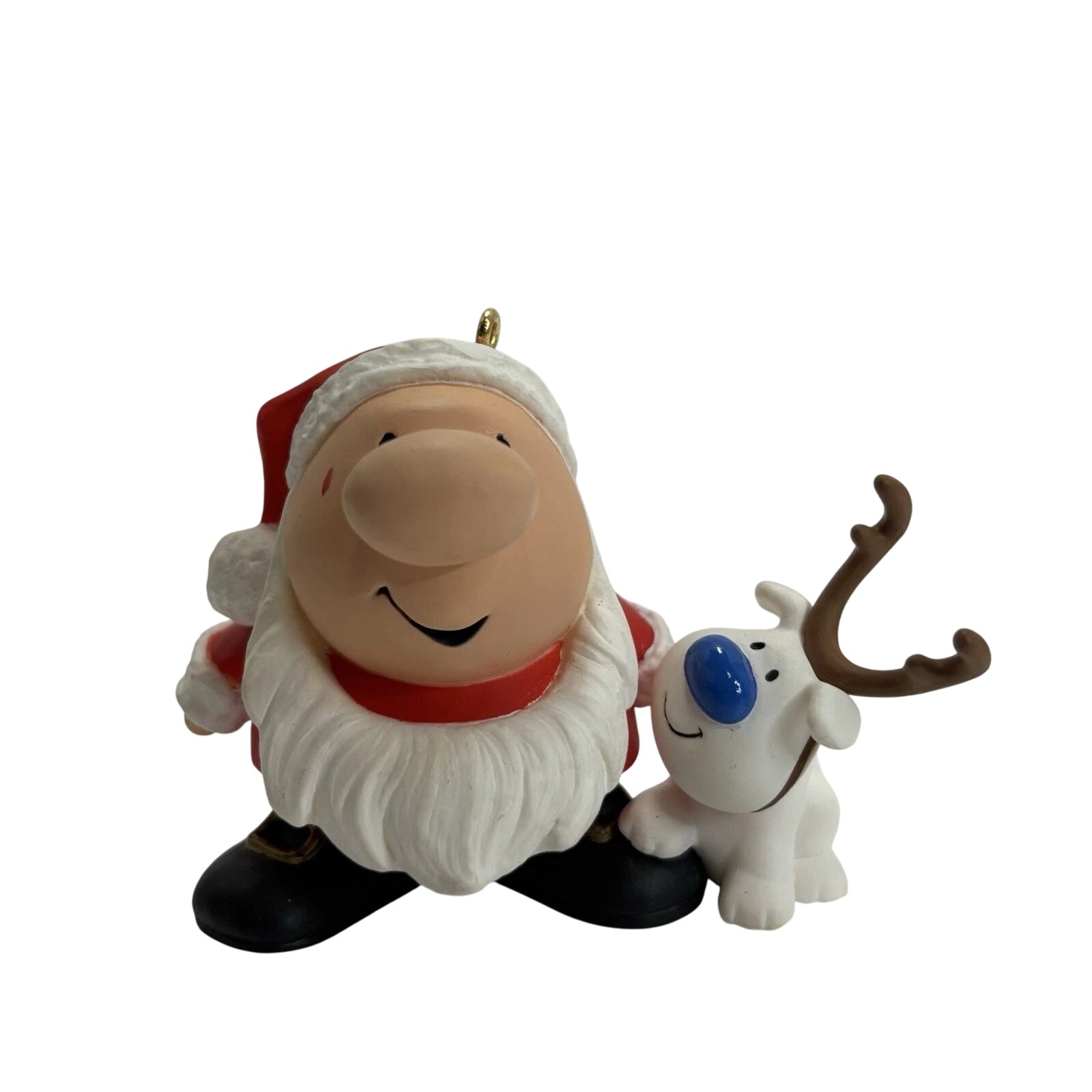 Celebrate a beloved comic-strip milestone with the 1996 Ziggy Keepsake Ornament, created for his 25th Anniversary (1971-1996). This ornament features Ziggy dressed as Santa, accompanied by his loyal dog Fuzz, in a festive, colorfully painted scene that captures Ziggy’s gentle humor and charm.