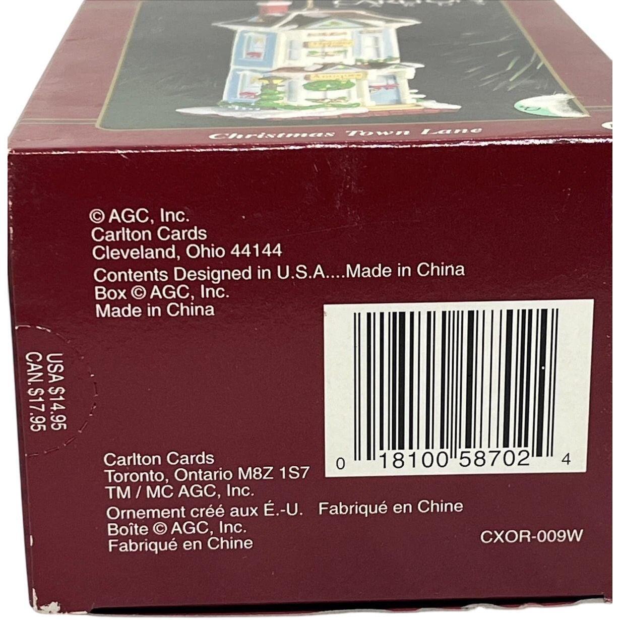 This miniature house ornament from the Carlton Cards Heirloom collection features a charming “town lane” building motif—evoking a cozy holiday street scene. The finely molded plastic or resin body is painted with rich seasonal hues and detailed with snow-topped rooflines, festive window accents and a ready-to-hang ribbon loop. Ideal for collectors of village-style Christmas décor or display sets, this dated piece combines architectural appeal with nostalgic charm.