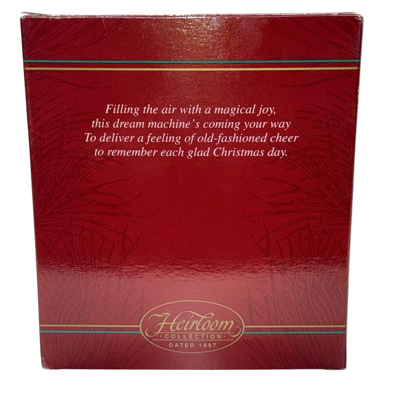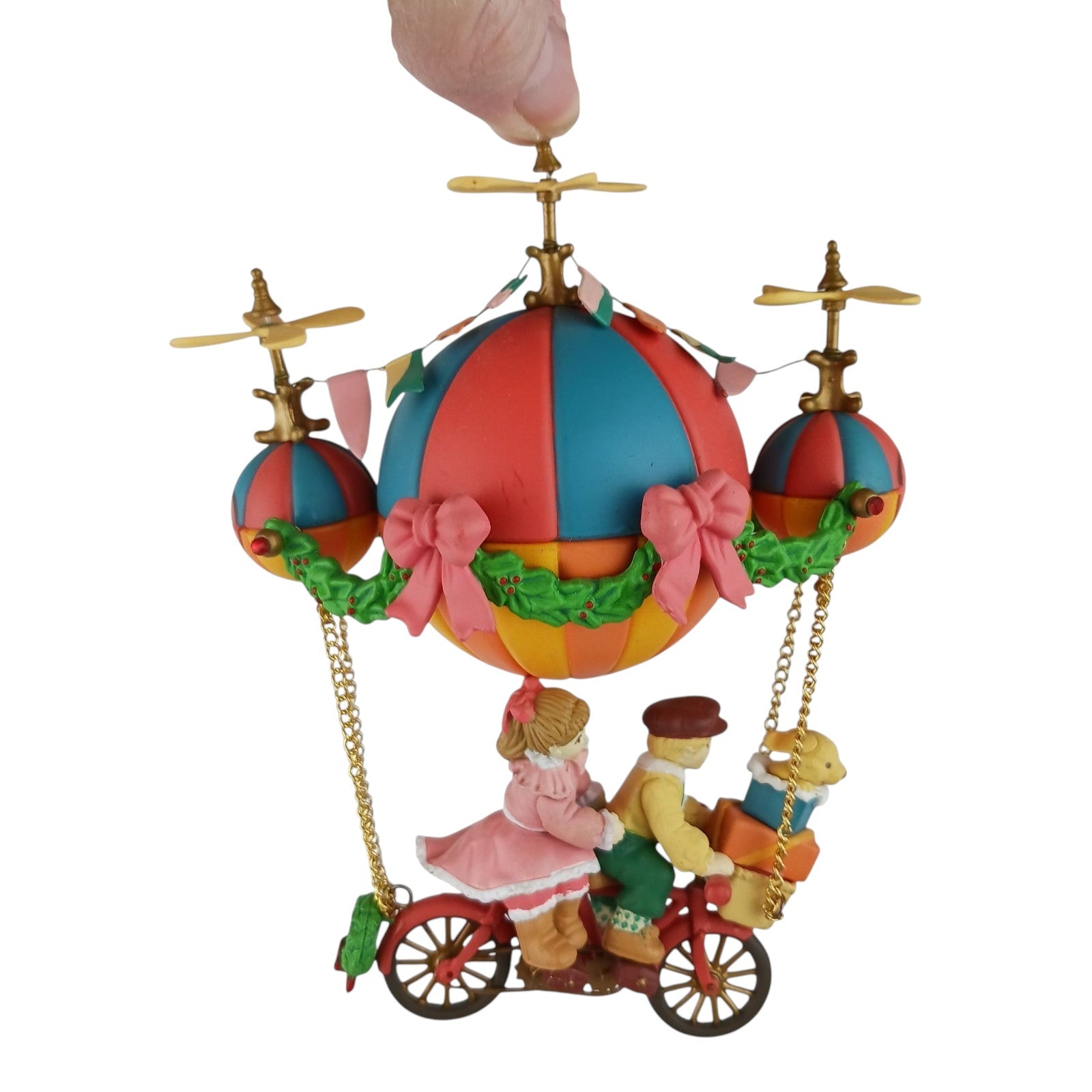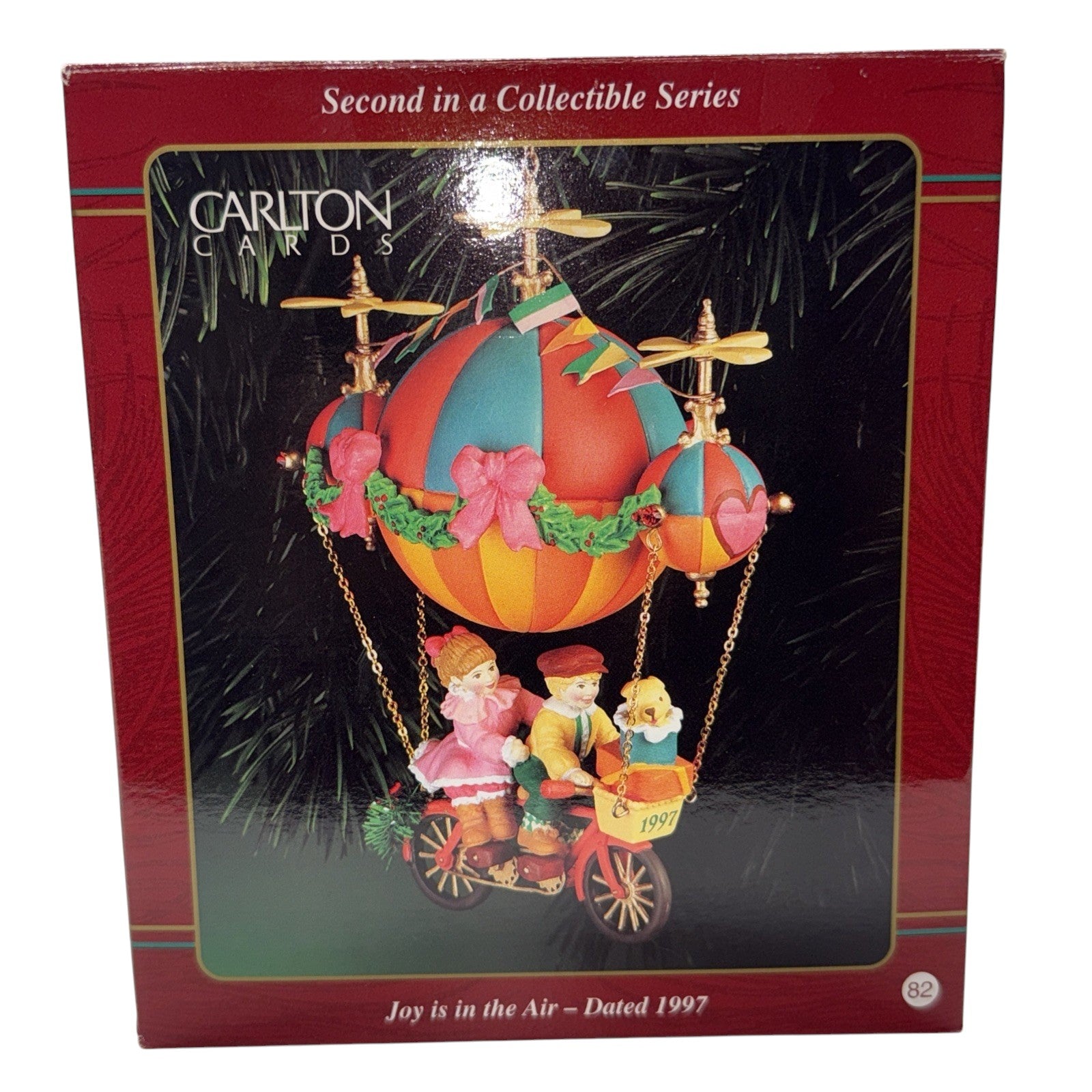 This charming ornament from the Carlton Cards 1997 Heirloom “Joy is in the Air” series features a whimsical bicycle adorned with festive accents such as ribbons, bells or evergreen touches. The detailed resin/plastic construction combined with nostalgic holiday imagery gives this piece strong collector appeal. It stands out for its unique motif—beyond the typical Christmas ornament themes—making it an excellent addition for ornament enthusiasts or bicycle-themed décor collectors. The combination of date-specific release, quality materials and charming design contribute to its collectible character.