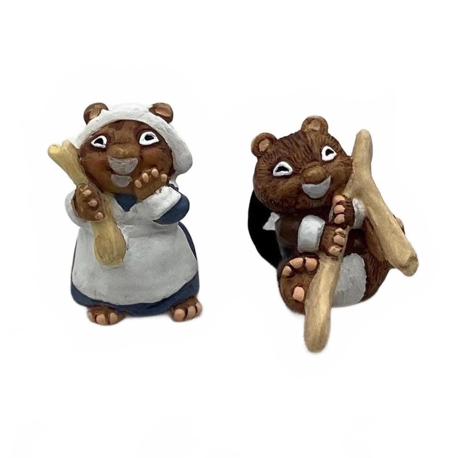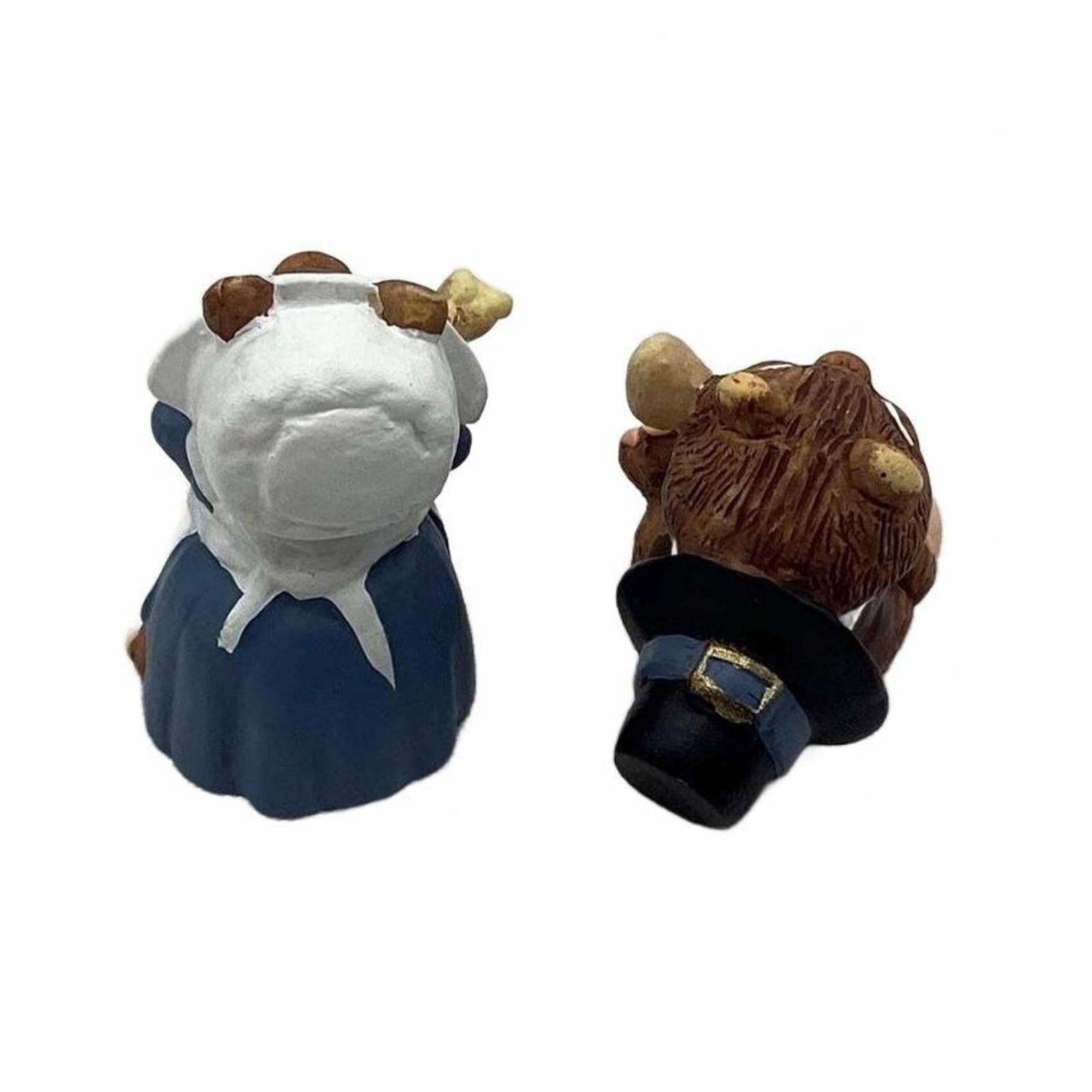 Celebrate the spirit of Thanksgiving with Hallmark's 1997 "Making a Wish" Merry Miniatures set. This delightful two-piece figurine features a charming pair of chipmunks dressed as pilgrims, joyfully pulling apart a wishbone—a heartwarming nod to holiday traditions. Crafted with meticulous attention to detail, these figurines capture the essence of gratitude and togetherness. The set is made of durable resin and was originally released without a box. No batteries, cords, or light strings are required for display.