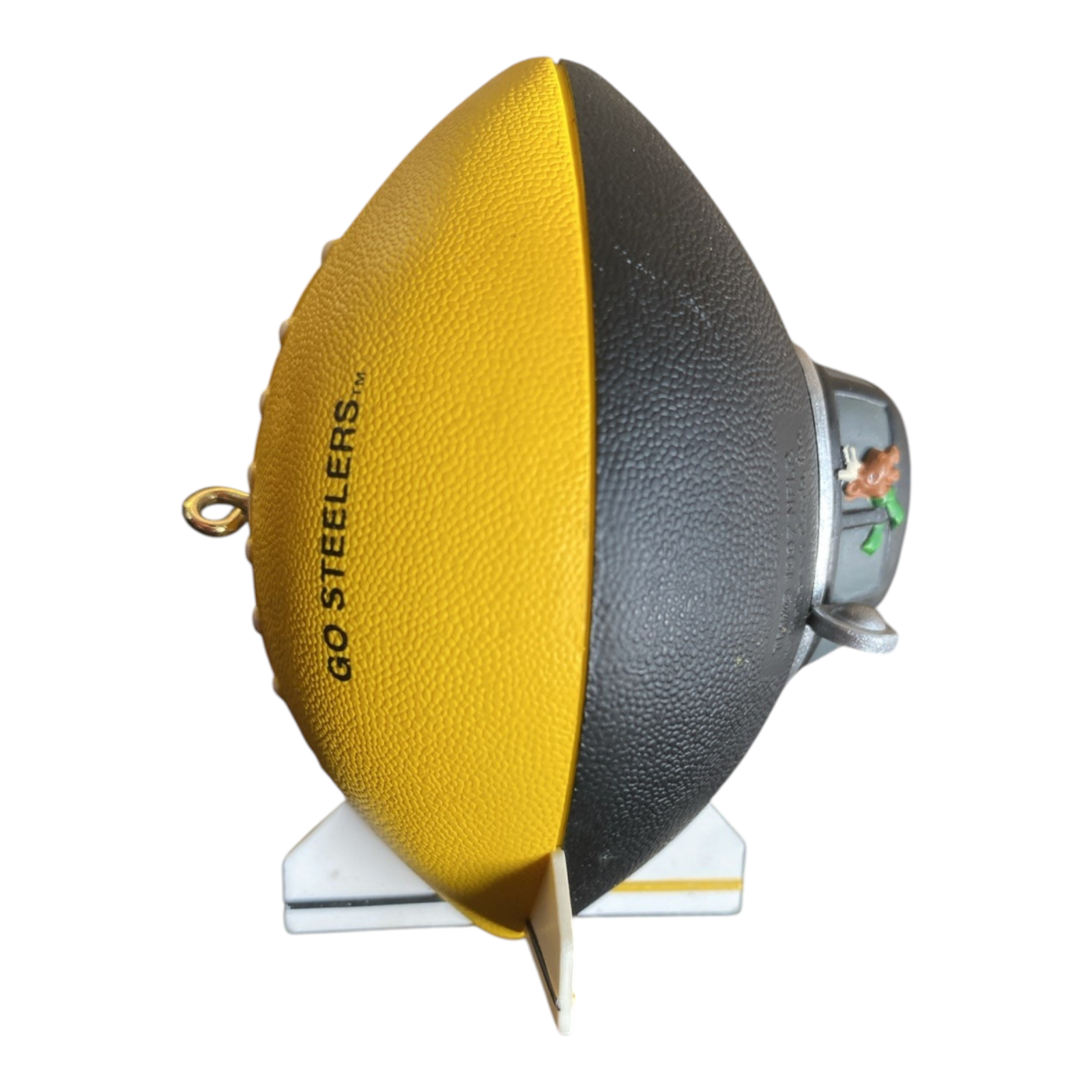 This 1997 ornament from the Hallmark Keepsake NFL collection features the iconic black and gold of the Pittsburgh Steelers, shaped as a stylised blimp with the team logo and “1997” on the design. The ornament captures both team spirit and holiday cheer, making it ideal for Steelers fans, NFL collectors or anyone wanting to celebrate the season with a sports-themed accent.