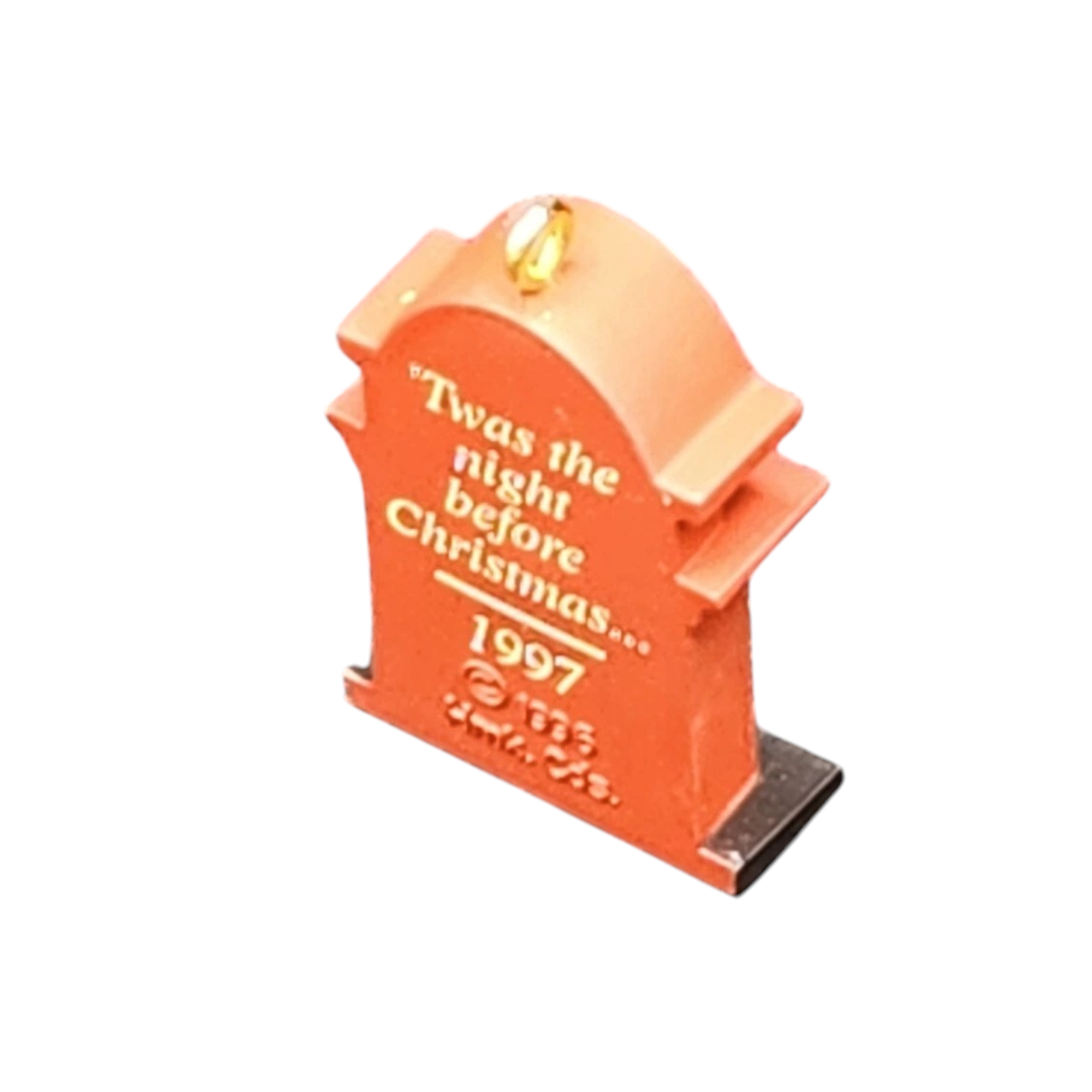 This collectible mini-ornament from the Hallmark Keepsake line features a cozy scene: a little mouse bundled up and seated beside a fireplace where stockings are hung, evoking the spirit of “’Twas the night before Christmas…” as the family waits in eager anticipation for Santa. Released in 1997 and part of the “Miniature” series, the compact size (approx. 1″ tall) adds nostalgic charm to holiday displays and is perfect for collectors of Hallmark mini ornaments.