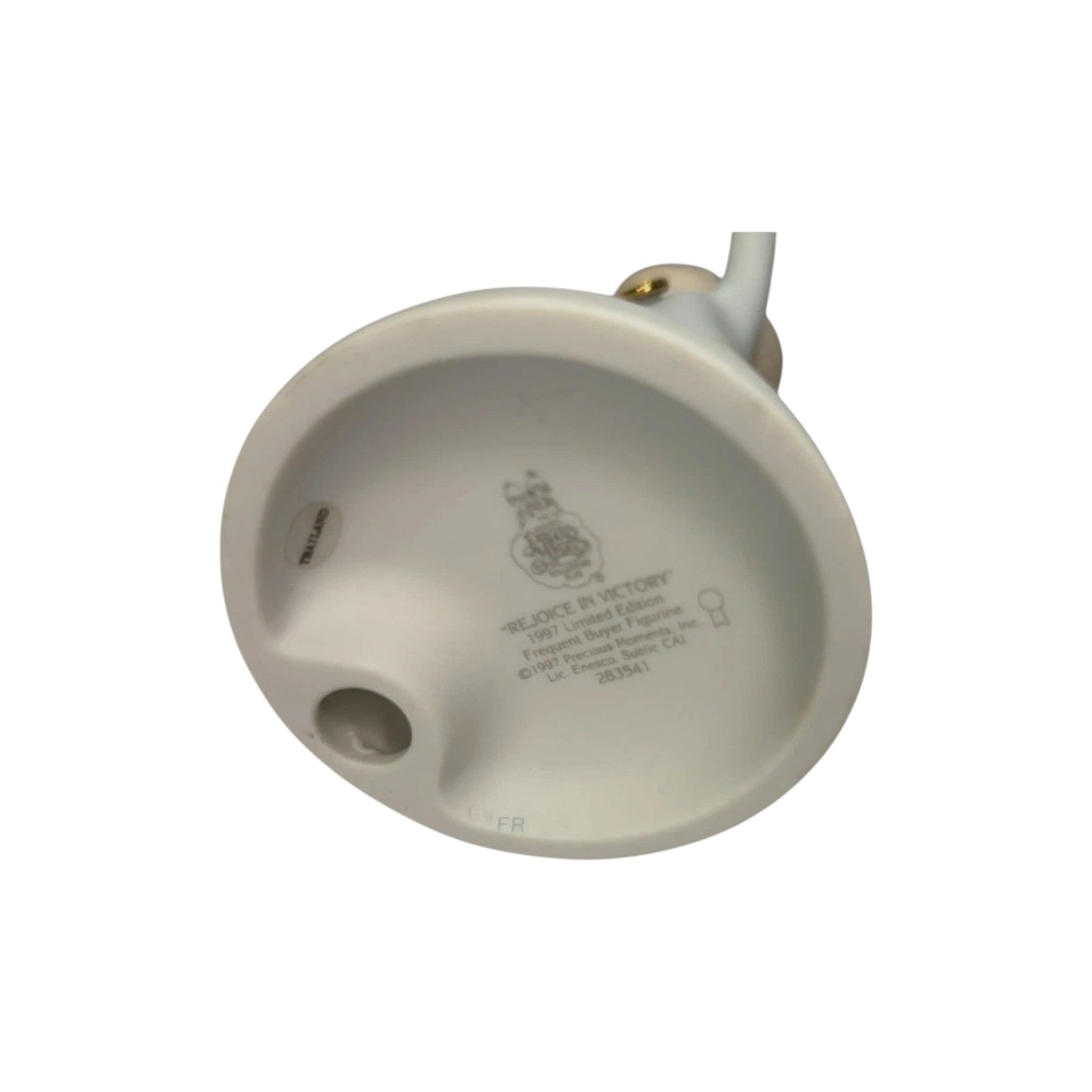 This uplifting Precious Moments figurine features a joyful child raising a trophy high, celebrating a well-earned victory with pure happiness and pride. Designed with soft pastel tones and the signature teardrop-eyed charm, this 1997 piece beautifully captures the excitement of accomplishment. Perfect for honoring achievements, celebrating personal milestones, or encouraging someone special, this figurine adds inspirational warmth to any Precious Moments collection.