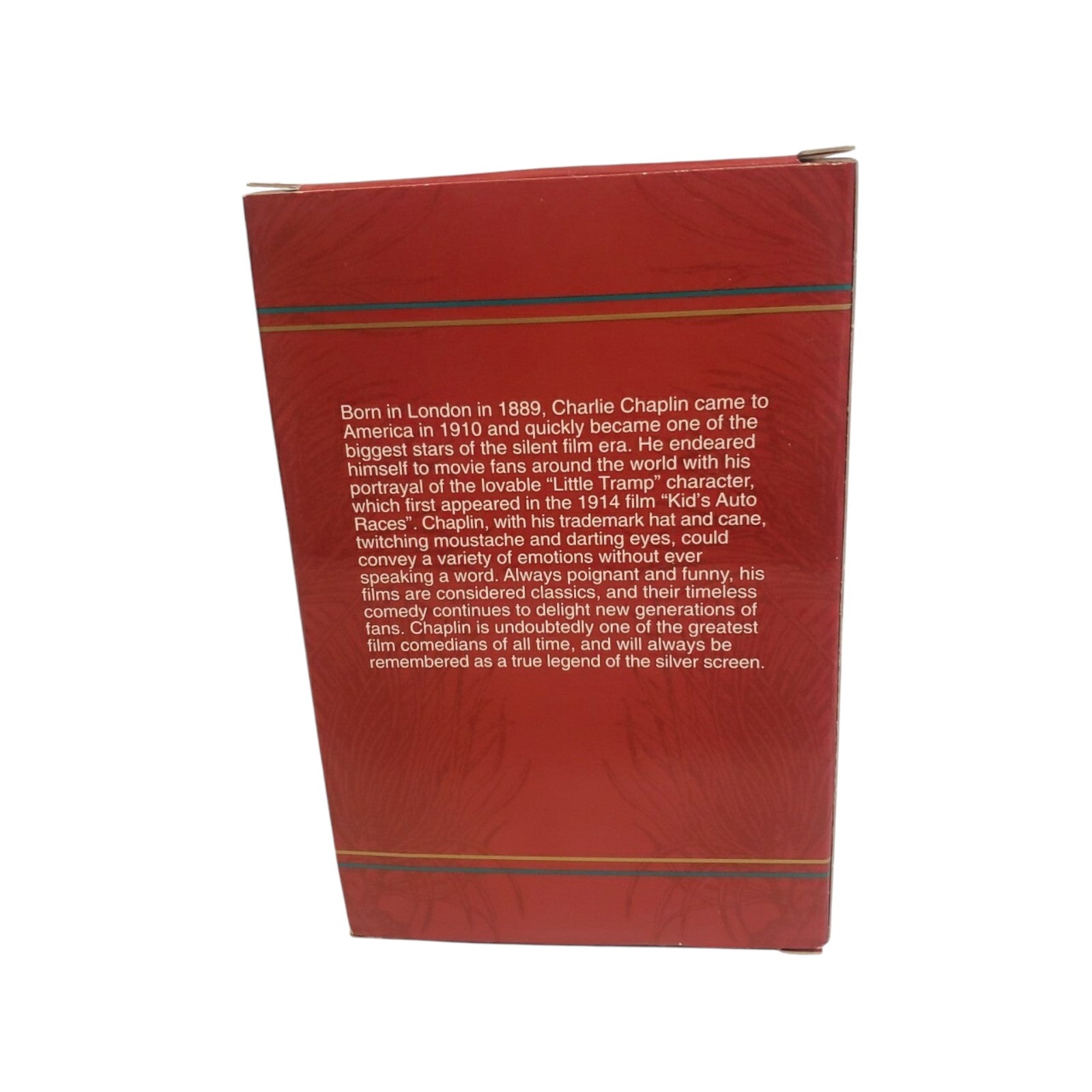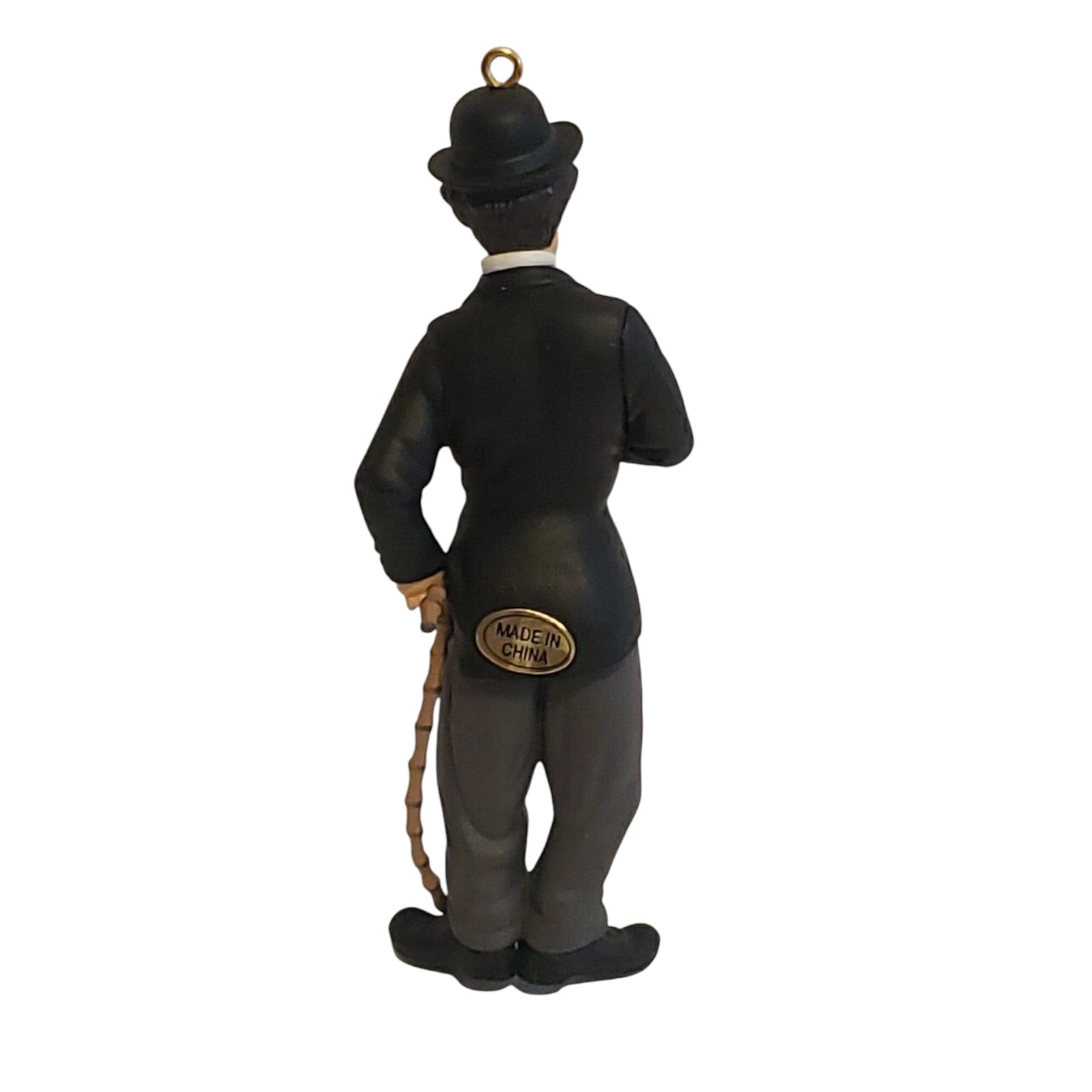 This collectible ornament from the 1997 Carlton Cards Heirloom “Legend / Movie TV Series & Animations” line features the iconic Charlie Chaplin in his famed “Tramp” persona — bowler hat, cane and expressive pose. The molded plastic (or resin-style) figure is painted with fine detail and framed within a holiday context, making it ideal for vintage film enthusiasts and ornament collectors alike. With its licensed classic-movie theme, date-specific release and quality finish, the piece blends nostalgia, décor and collector-appeal into one striking keepsake.