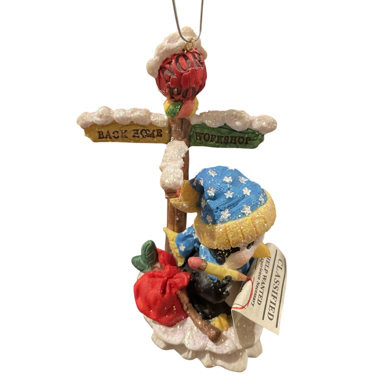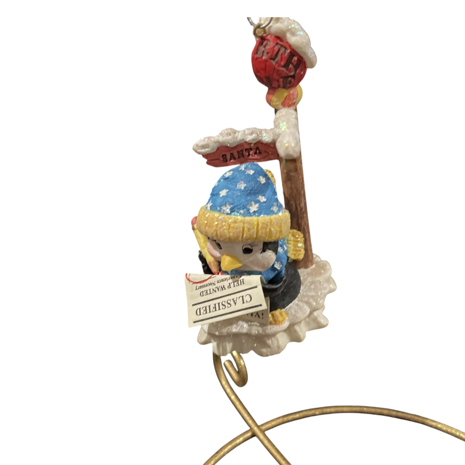 The “Holiday Help Wanted (Penguins)” ornament (SKU CXOR-122W) from Carlton Cards brings a dose of North-Pole humour to your holiday décor. Featuring a cheery penguin character holding a “Help Wanted – North Pole” sign, this moulded resin/plastic piece is painted in bright festive colours and finished with a hanging loop for effortless display. Part of Carlton’s Heirloom lineup, it appeals especially to penguin-loving collectors, novelty-ornament fans and anyone who enjoys a touch of playfulness on the tree. A charming addition for your vintage collection or a fun gift for animal-theme décor lovers.