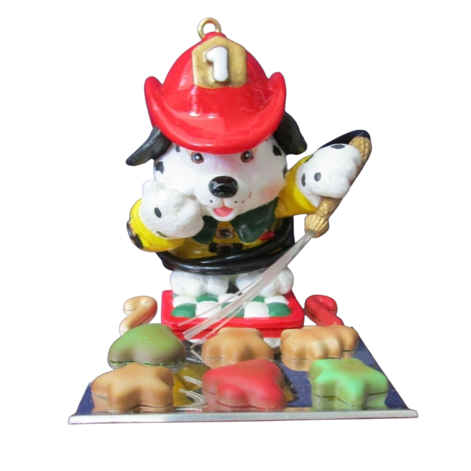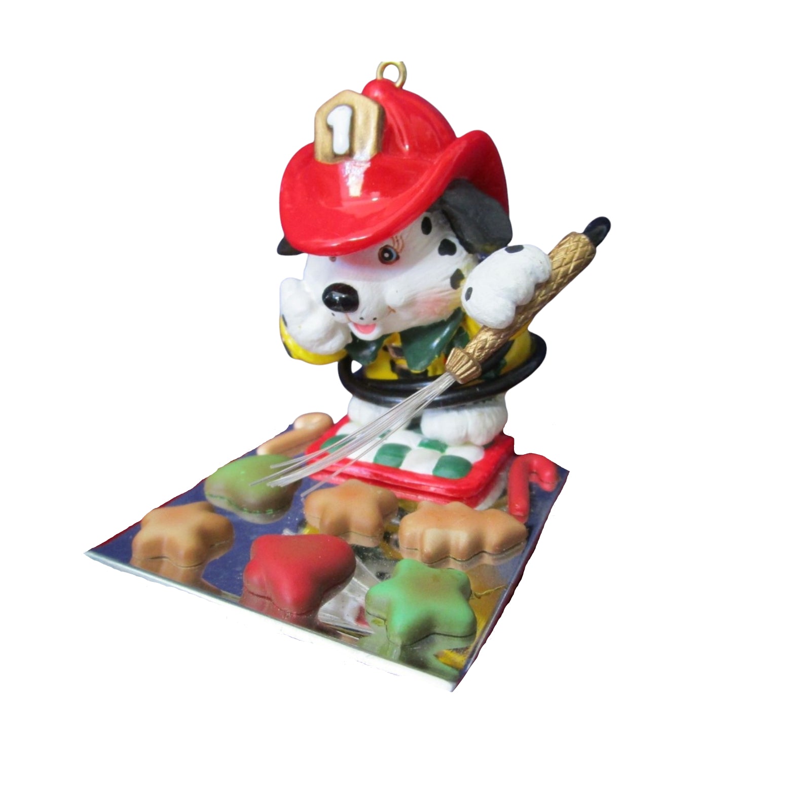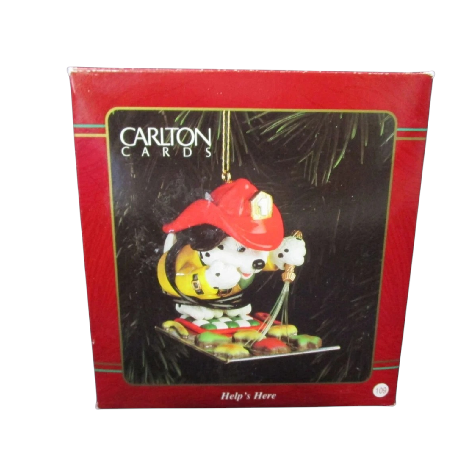 This charming “Help’s Here!” ornament from Carlton Cards’ Heirloom collection features a playful Dalmatian fire-dog dressed in firefighter turnout gear, proudly standing by a fire hose or fire-truck motif. The figure is moulded in painted resin/plastic, with bright red and yellow fire-service accents, and hangs ready on the tree with an integrated loop. Ideal for honoring first responders, fire-service fans or those looking to add a unique “service hero” theme to their holiday décor, this piece blends nostalgia, humour and collectible craftsmanship.