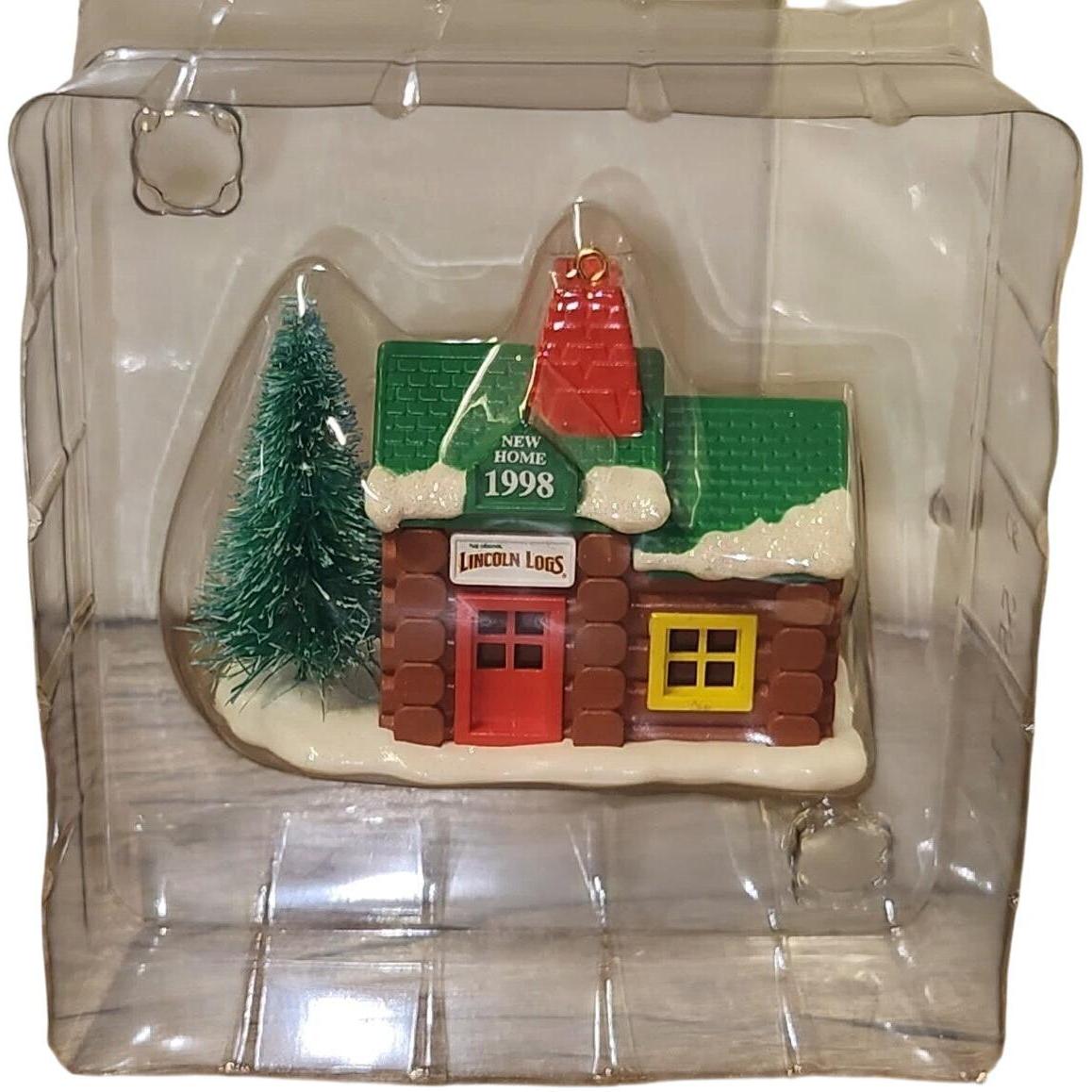 Celebrate the joy of new beginnings with this charming 1998 collectible from Carlton Cards’ Heirloom “New Home” series. The design features a miniature log-cabin style ornament modeled after the classic Lincoln Logs toy, complete with snow-dusted roof, tiny bottle-brush tree and holiday detailing. Crafted in painted plastic with nostalgic styling, this piece makes a perfect house-warming gift or keepsake for toy-theme ornament collectors. With its dated release and licensed branding, it holds year-specific collectible value.