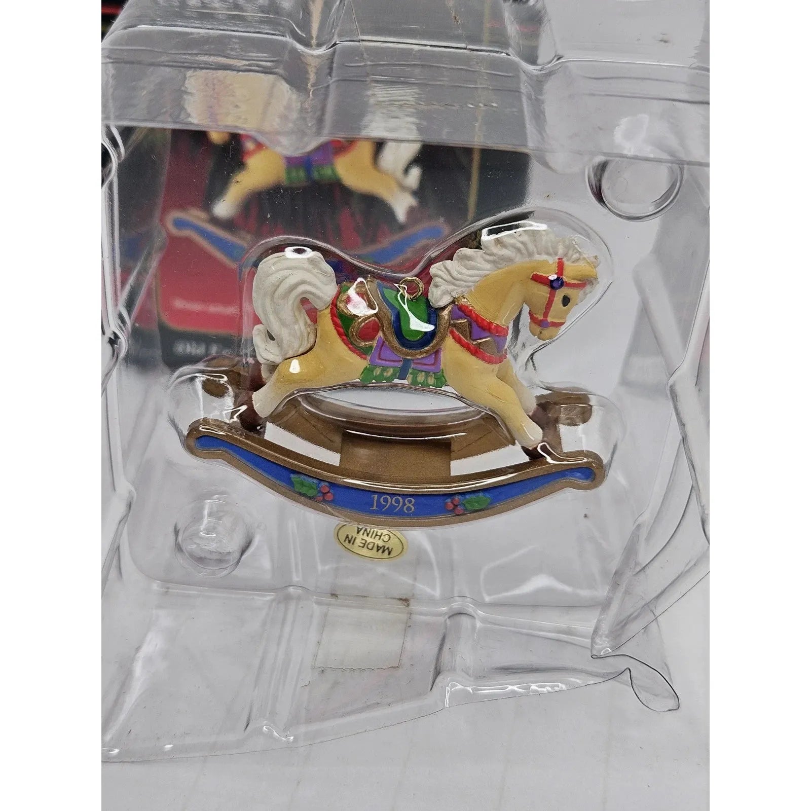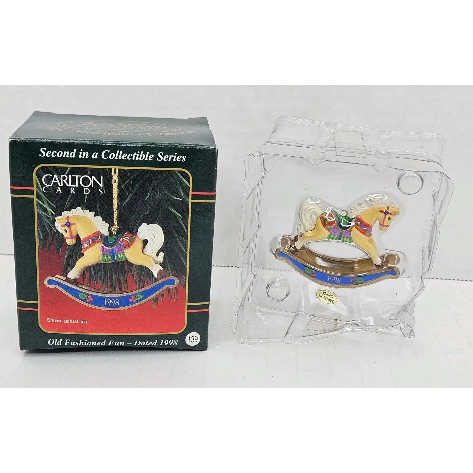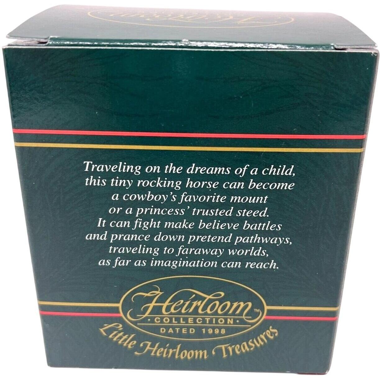 This nostalgic ornament from the 1998 Carlton Cards Heirloom “Old Fashioned Fun” collection features a classic rocking horse toy motif—fully molded in detailed plastic with hand-painted holiday accents and a timeless vintage-toy style. The rich finish, traditional design and date-specific branding make it ideal for collectors of toy-themed décor or nostalgic holiday ornaments. Combining craftsmanship with sentimental appeal, it’s a standout piece for any tree or display.