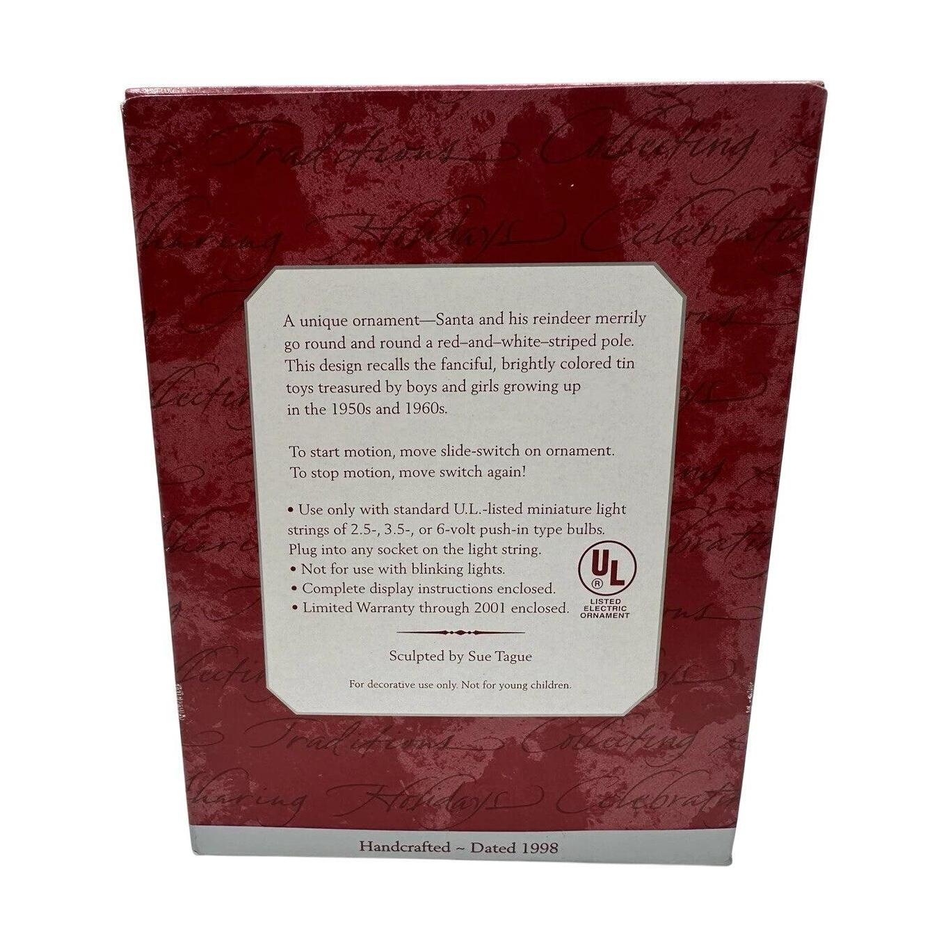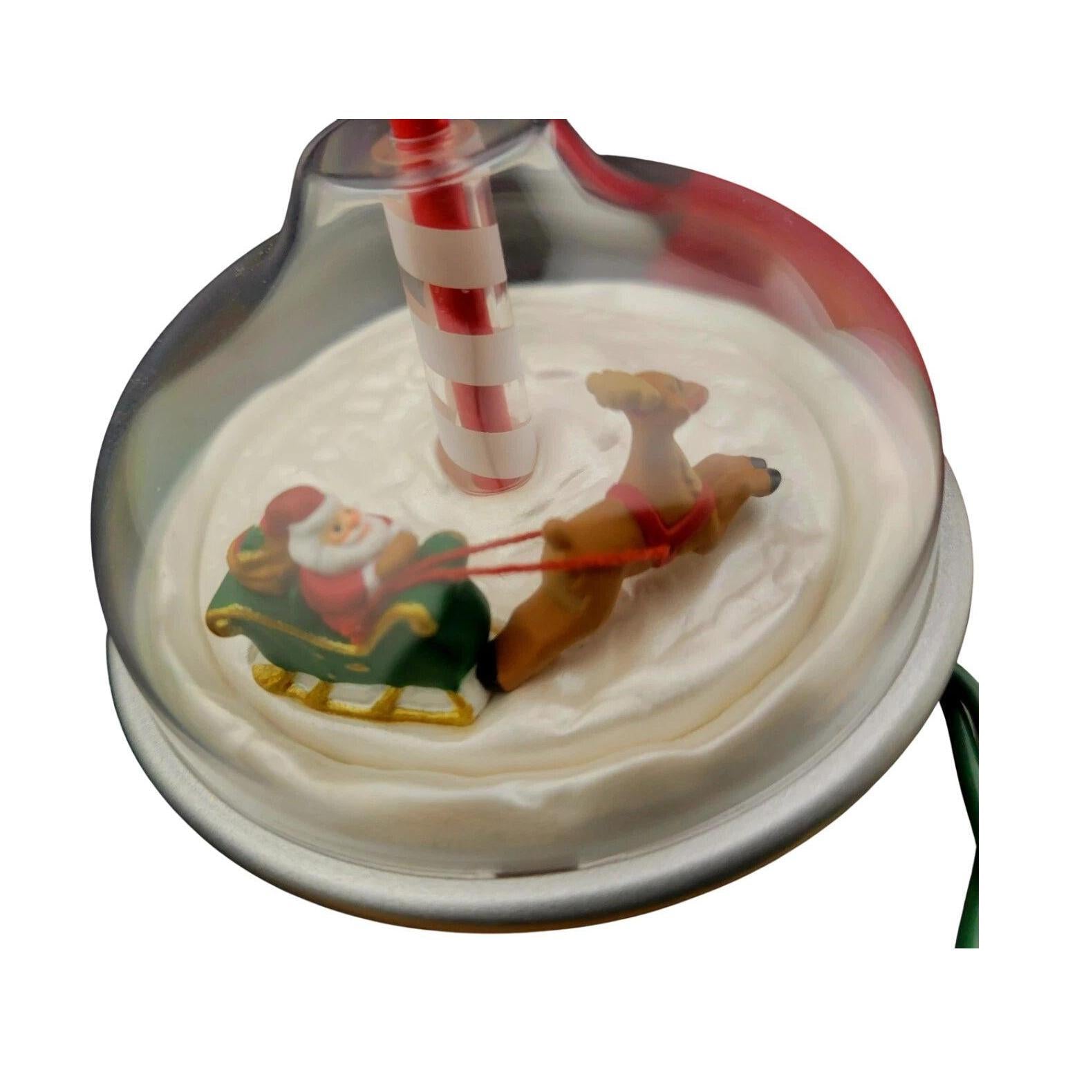 Get ready for a swirl of holiday fun with the 1998 Santa’s Spin Top Hallmark Keepsake ornament. This imaginative Magic ornament features Santa Claus joyfully riding a festive red-and-green spinning top, decorated with golden trim and star accents. When connected to a miniature tree light strand, the ornament illuminates and spins gently, creating a delightful motion that brings Santa’s playful spirit to life. Designed with bright color, movement, and holiday cheer, it perfectly captures Hallmark’s signature Magic charm—making it a favorite among collectors who love interactive and whimsical designs.