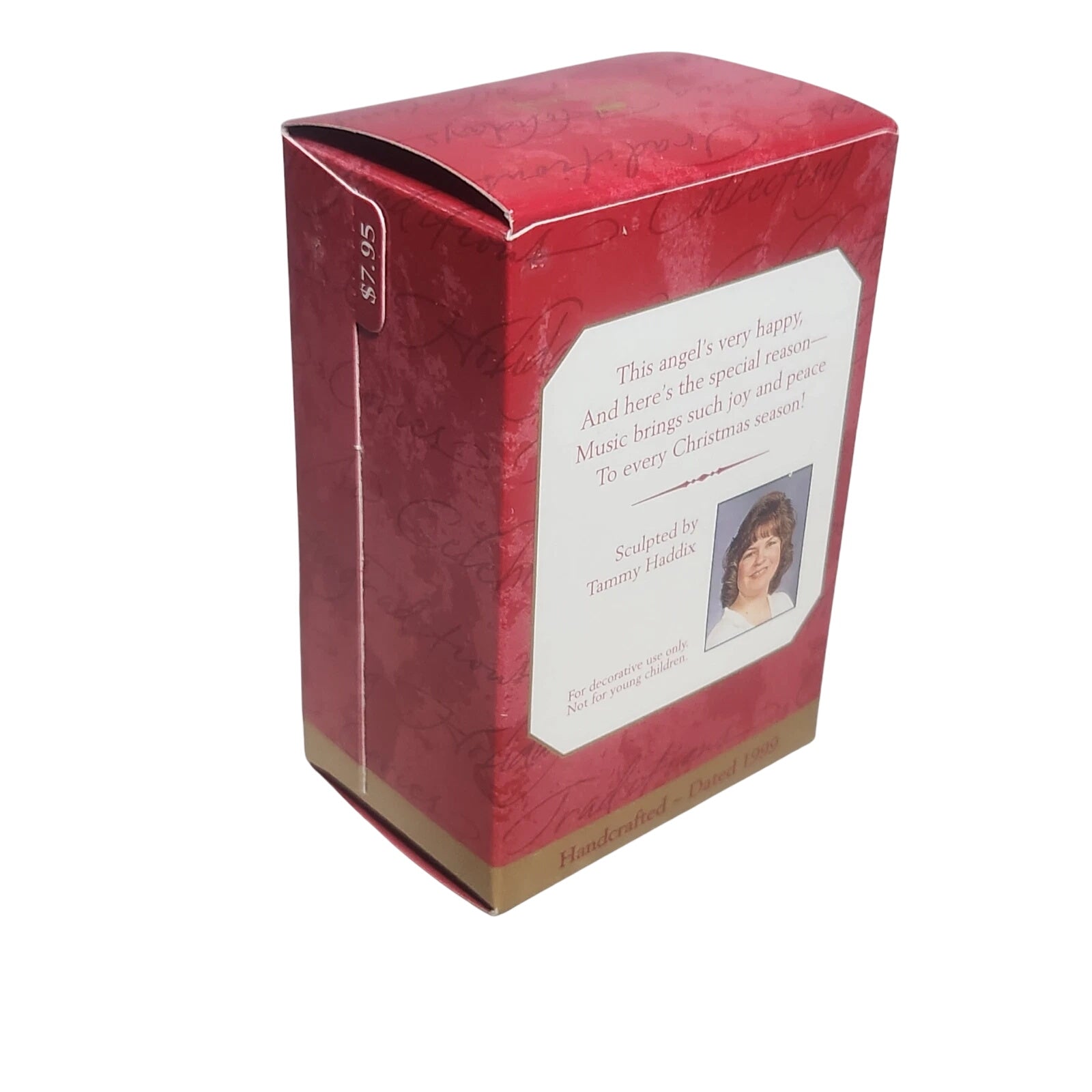This 1999-dated edition from the Hallmark Keepsake line showcases a graceful angel figure perched upon a golden G-clef dated “’99”, playing a harp with serene expression. Richly detailed and hand-painted in vibrant yet elegant tones, the ornament combines both musical motif and celestial imagery—perfect for collectors focused on music-themed holiday décor or those seeking standout pieces from the late 1990s. The compact size and artistic styling make it an ideal tree ornament or display item.