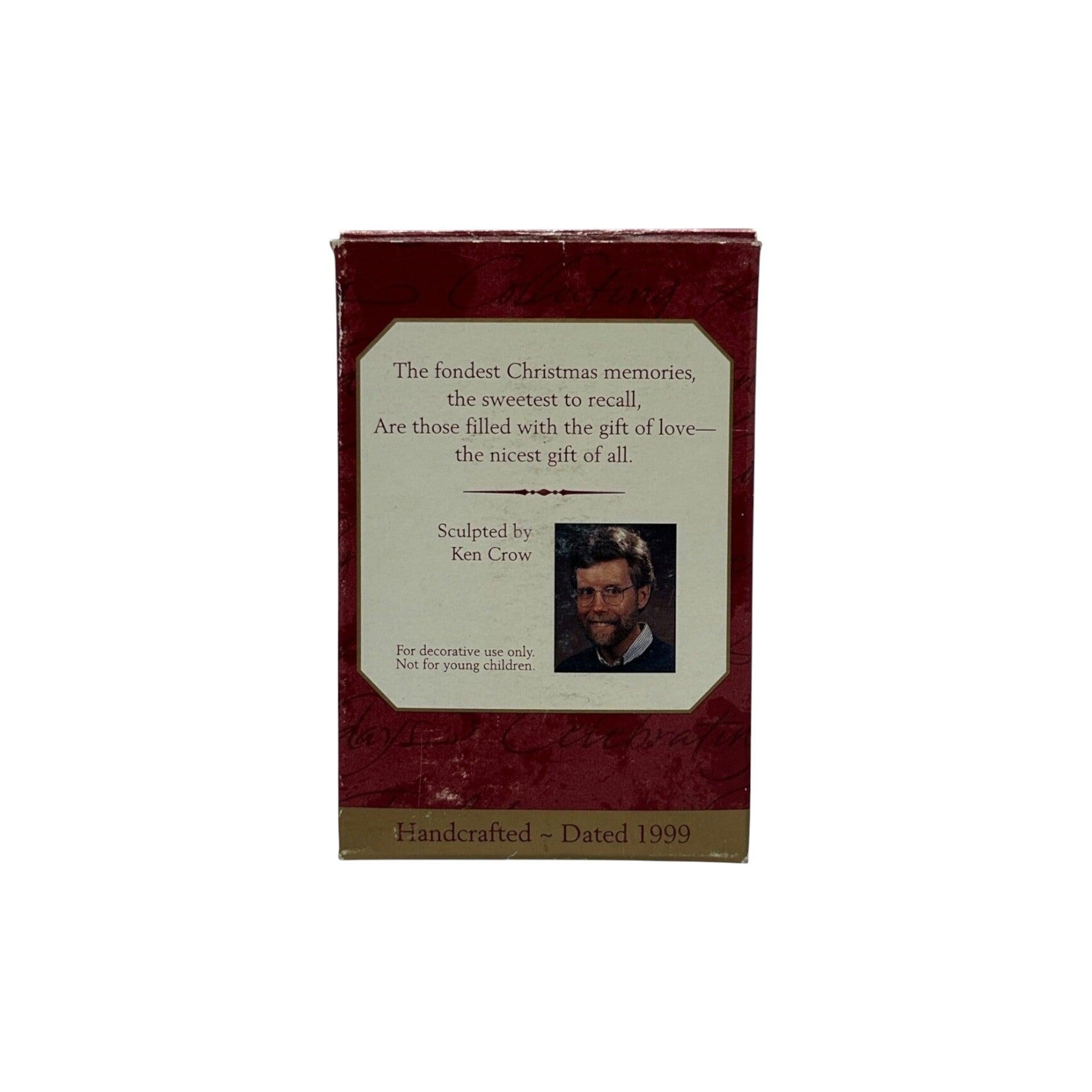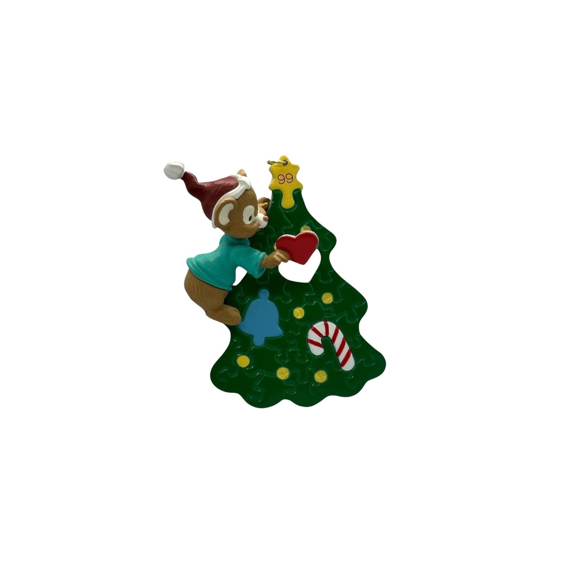 This charming keepsake ornament features a small mouse wearing a stocking-cap, carefully placing a heart-shaped jigsaw-puzzle piece at the centre of a Christmas tree—symbolising the idea that “adding the heart” is the best part of the holiday. The design highlights the soft winter hat, the mouse’s gentle posture, and the detailed heart piece shaped like the final puzzle piece. As a richly symbolic and heart-warming piece from the 1999 collection, it holds special appeal for fans of both the mouse motif and sentimental holiday décor. Because of its theme and limited-year release, it makes a meaningful addition to collections focused on love, puzzles, and the “final piece” sentiment.