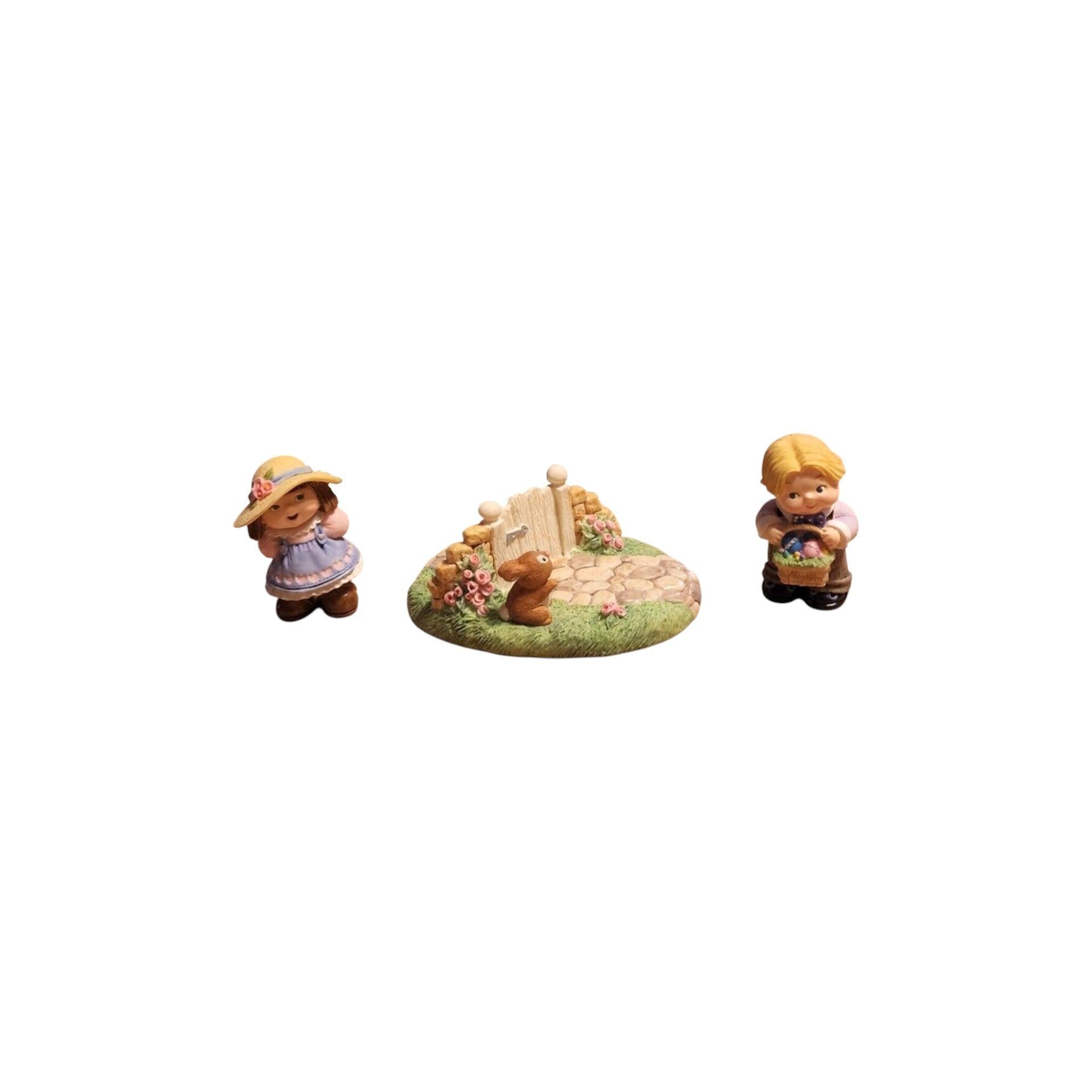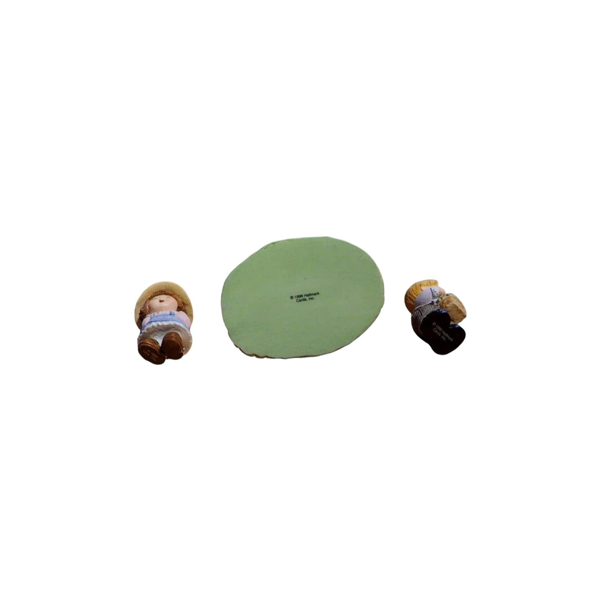Send a sweet whisper of friendship with the 1999 Bashful Friends ornament set from Hallmark’s Merry Miniatures line. This tender scene shows the Bashful Boy and Bashful Girl shyly greeting each other by a garden gate — a charming tribute to those first moments of connection.
