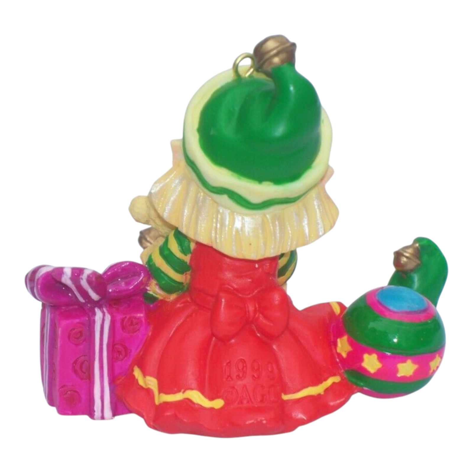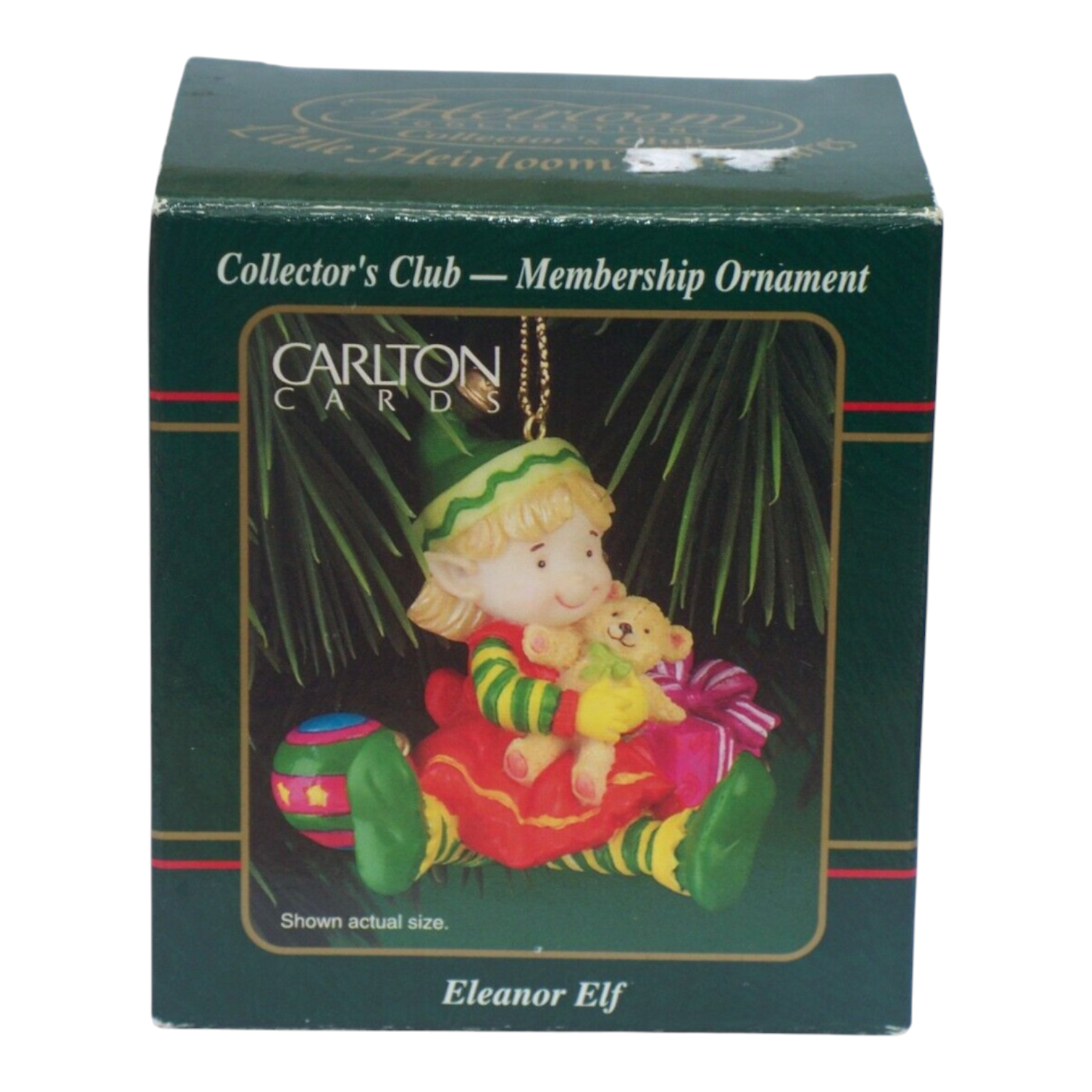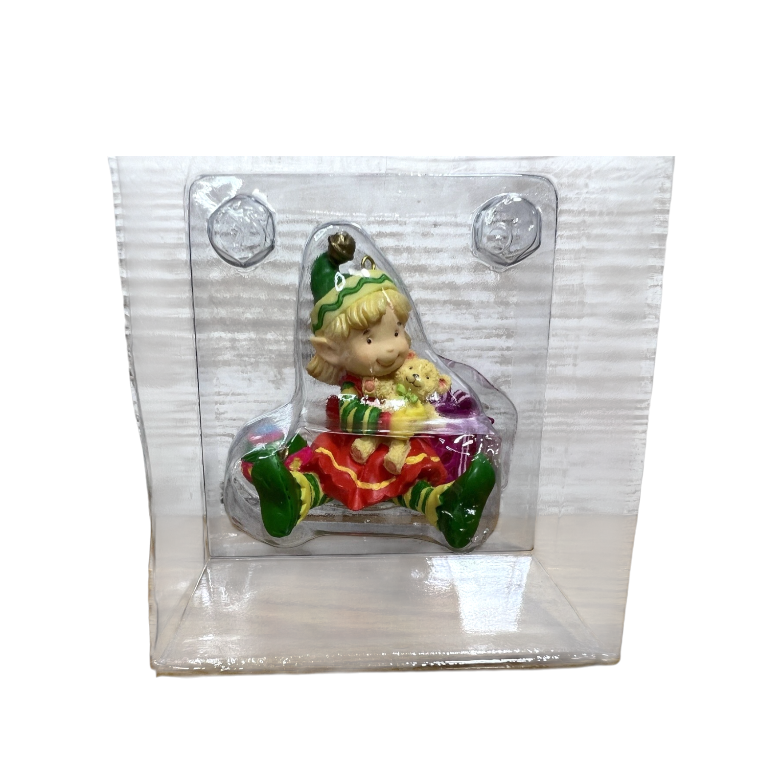 This festive collectible ornament features “Eleanor Elf,” a beloved character within the Carlton Cards Heirloom line, dressed in vibrant holiday attire with a cheerful pose and detailed hand-painted finish. The sculpt captures her elfin charm—pointed ears, a striped stocking cap, holiday-gift accents—and is crafted in high-quality molded resin or plastic. With its nostalgic 1990s styling, Eleanor Elf offers both whimsical appeal and collector value, making it an ideal choice for elf-themed trees, Heirloom ornament series fans and sentimental holiday décor collectors.
