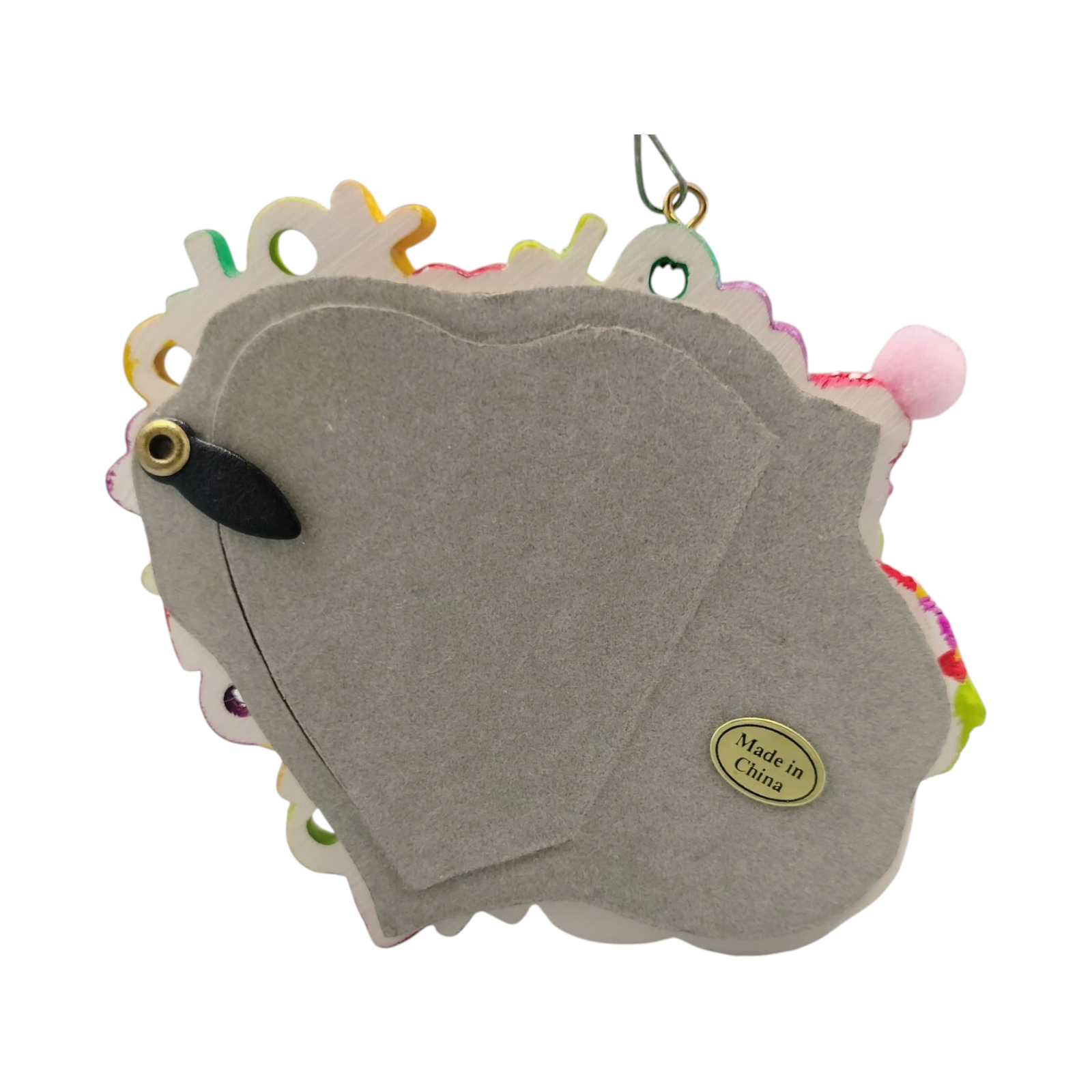 Materials: Painted molded plastic with metal hanging loop