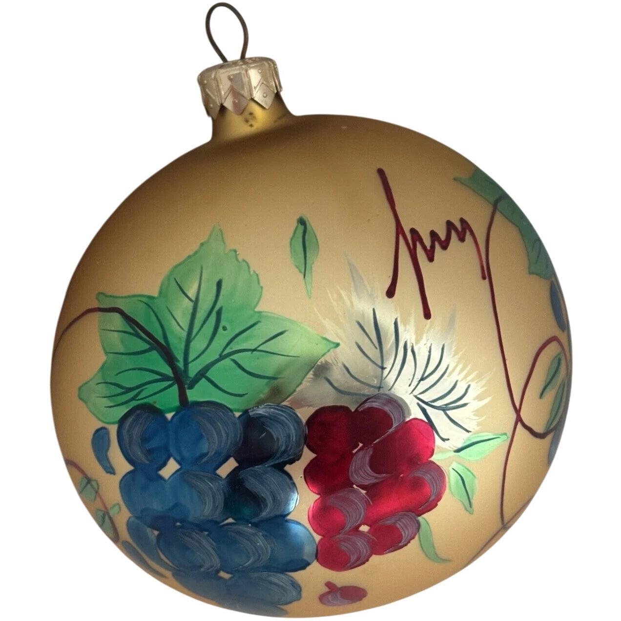 Celebrate the timeless elegance of the vine with the 1999 Harvest of Grapes blown glass ornament from Hallmark’s Crown Reflections line. This radiant glass ball features a lustrous golden background with hand-painted clusters of purple and red grapes, accented with green leaves and tendrils, evoking the richness of a vineyard at harvest time. Though produced in 1999, its motif is not dated on the ornament itself, making it versatile for year-round display.