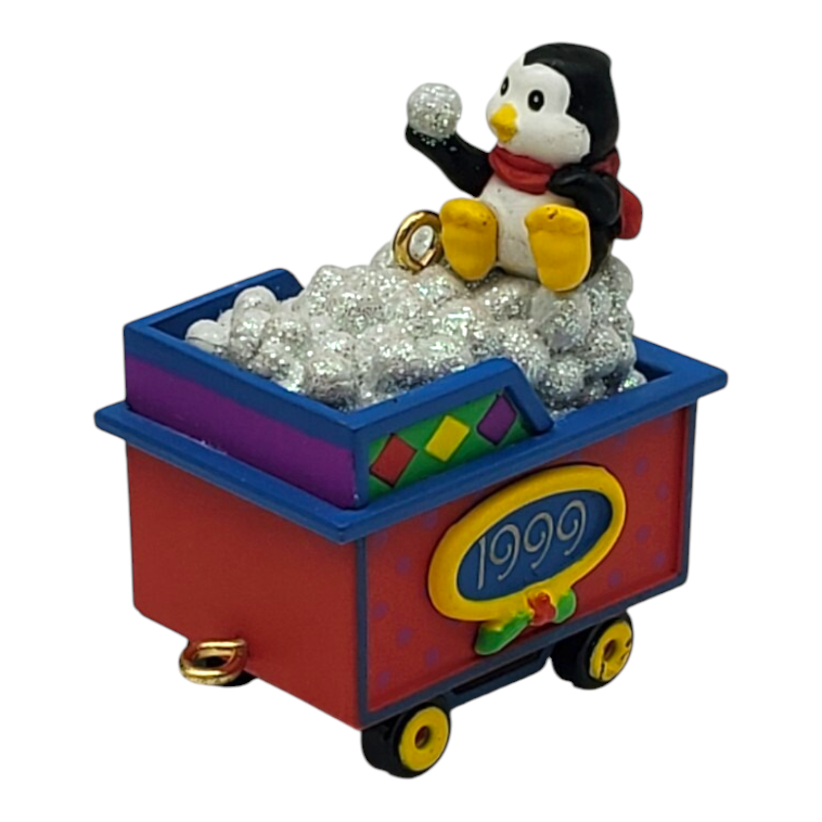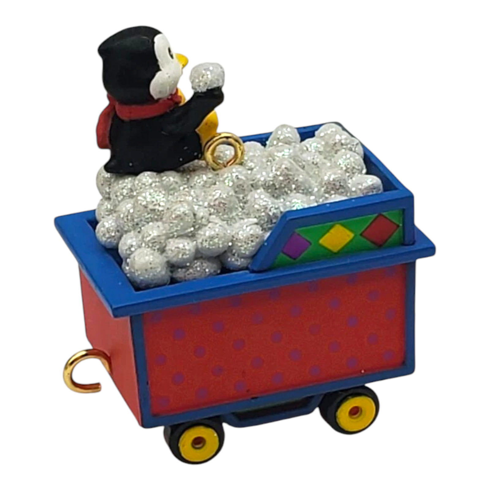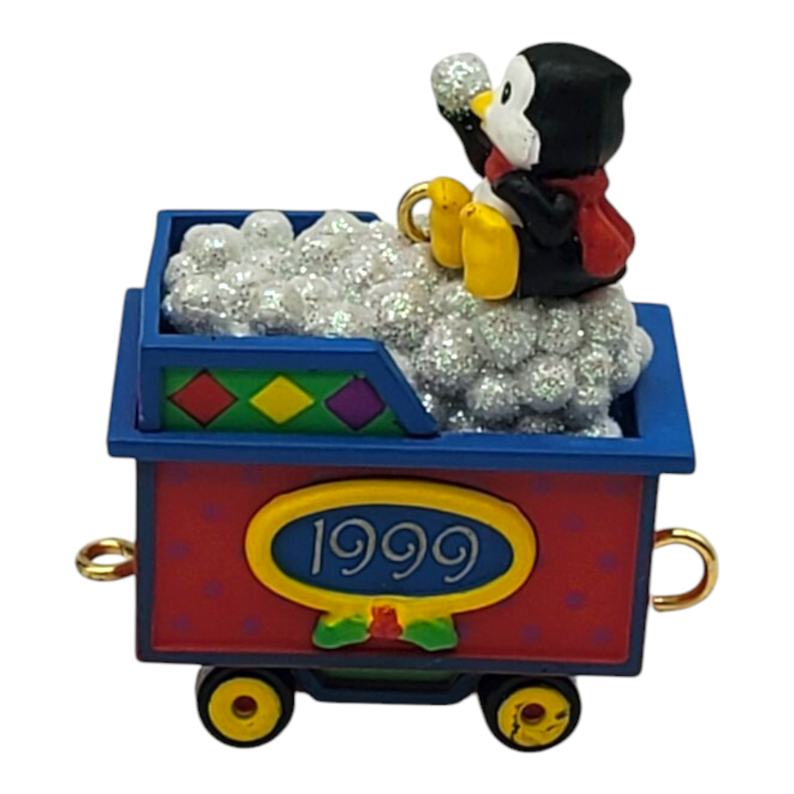 All aboard the nostalgia express with this 1999 “On Track for Christmas” train ornament from the Carlton Cards Heirloom / Little Heirloom line. The design features a festive locomotive in rich holiday colors, complete with detailed sculpting and a classic train-theme that evokes joyful journeys and Christmas traditions. With its clear 1999 release date and the variant SKU CXOR-136A, it’s a charming piece for collections themed around transportation, vintage décor, or classic holiday icons.
