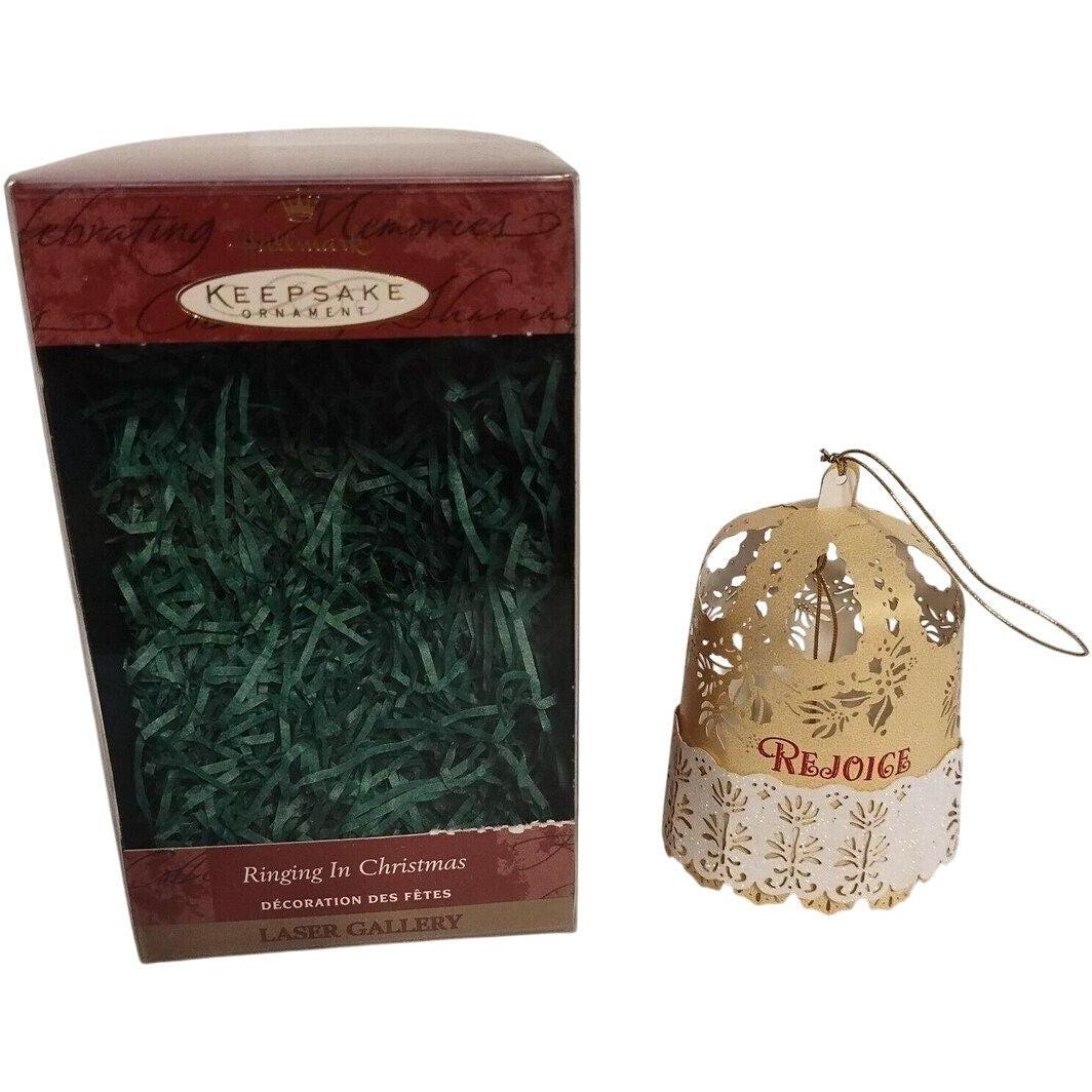 Celebrate the season with elegance and classic charm using this 1999 Ringing in Christmas ornament from Hallmark’s treasured Laser Gallery series. This beautifully laser-cut bell design is inscribed with the words “Renew,” “Rejoice,” and “Reflect,” and houses a delicate golden bell inside that rings when gently shaken—capturing nostalgic holiday spirit in a refined, luminous display. Often sold mint in its original Keepsake box, it makes a meaningful addition to any collection or a heartfelt holiday gift.