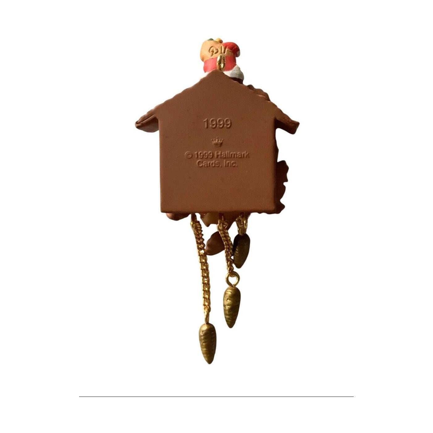 Celebrate timeless holiday charm with this 1999-dated miniature from the Hallmark Keepsake collection. The piece features jolly Santa Claus perched atop a whimsical cuckoo-clock style clockface, fine-tuned in rich holiday reds and greens with gold accents. Sculpted by Duane Unruh, the ornament captures the essence of “Santa’s time to shine” with a festive visual pun and collectible appeal. Its compact size, resin build and 1999 date make it a perfect fit for late-90s Hallmark collectors, miniatures enthusiasts, or Santa-themed holiday décor.