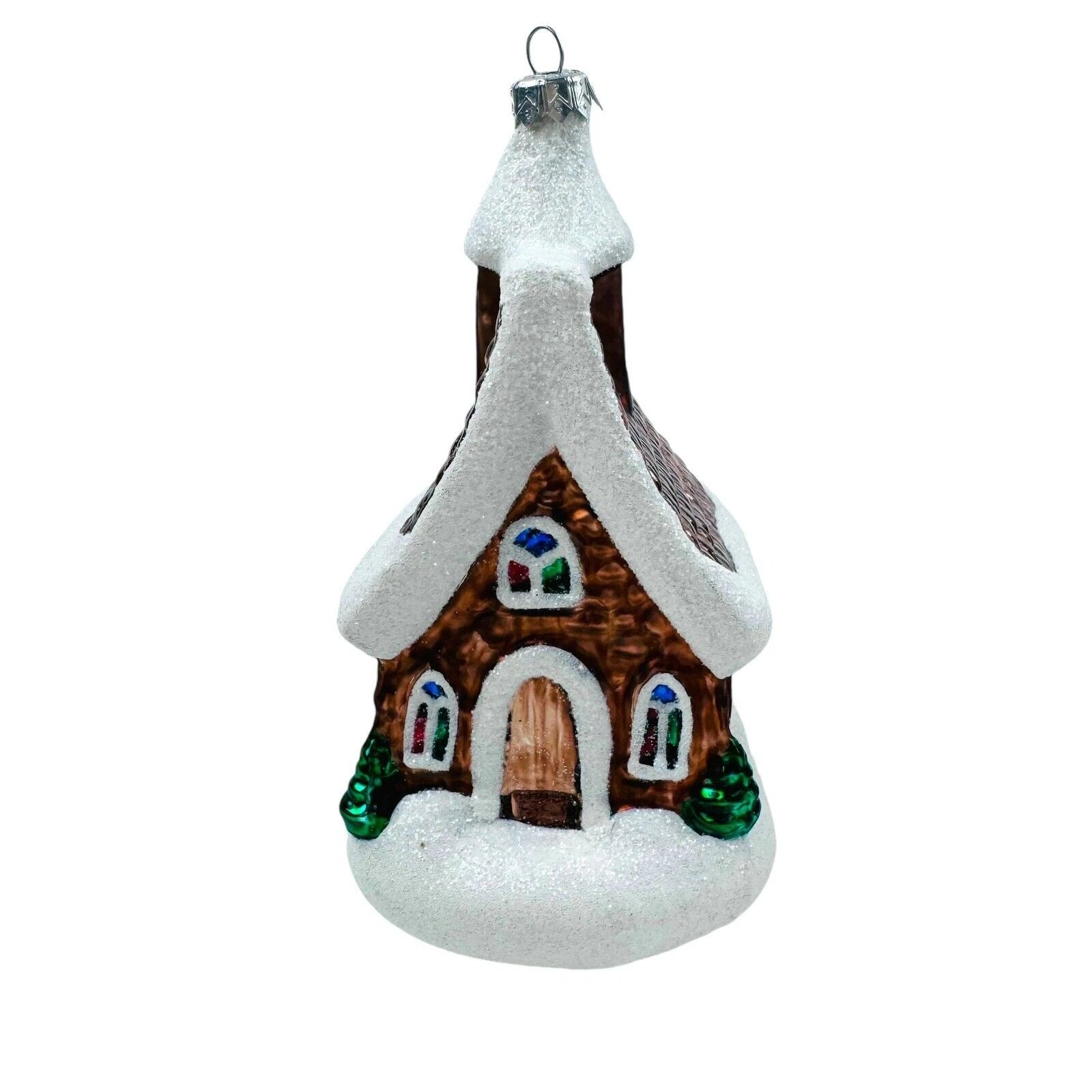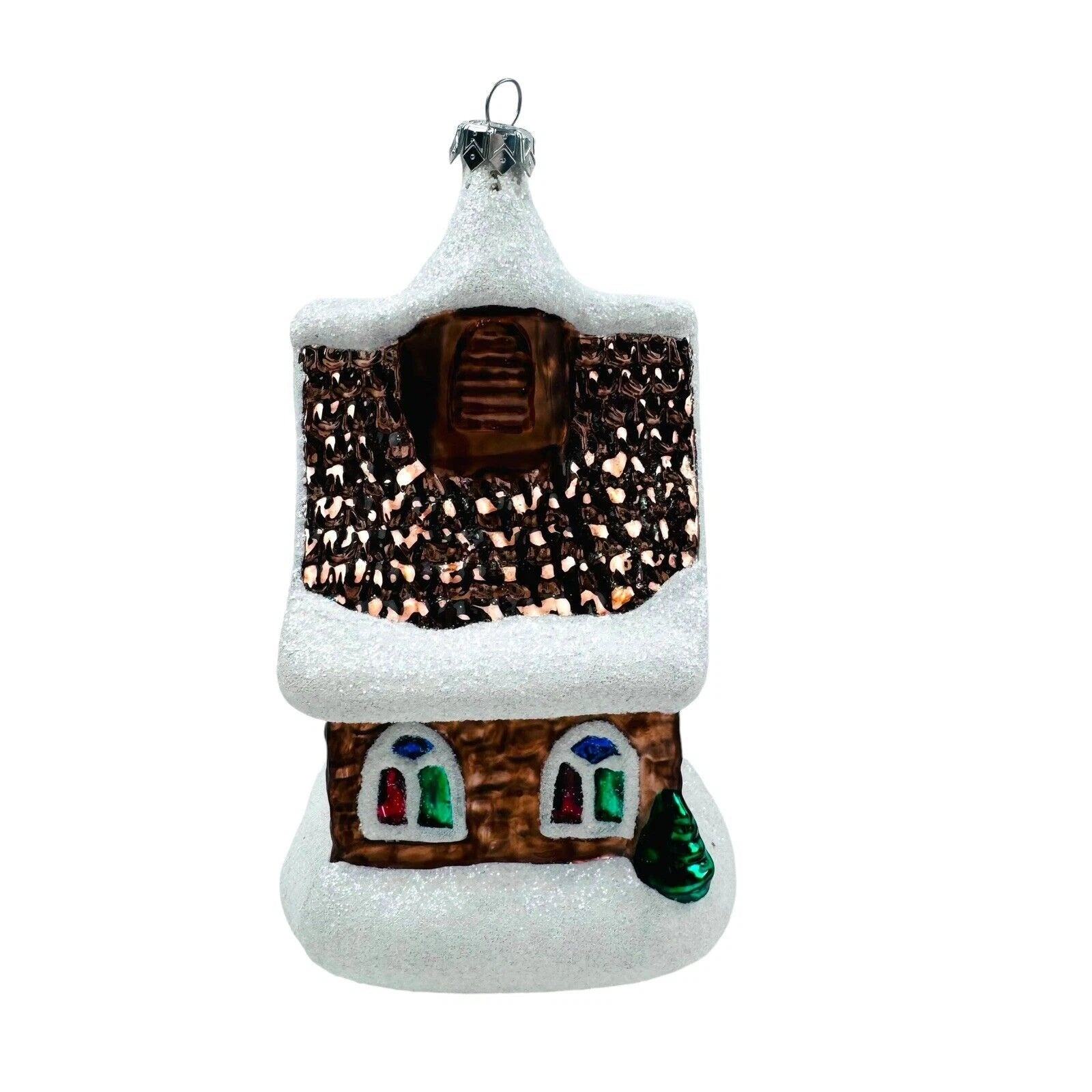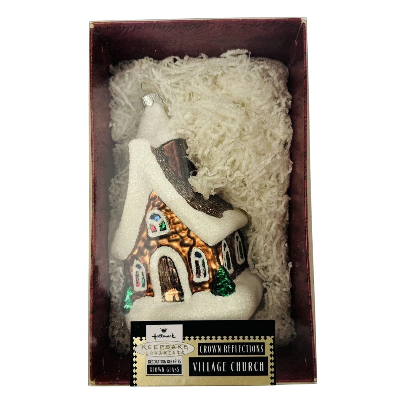 This elegant ornament is part of Hallmark’s Crown Reflections blown glass line, capturing a serene, snow-kissed village church in handcrafted detail. The design features a slender steeple, textured glass façade, and painted stained glass window effects in red, blue, and green, topped with glittered snow accents. It comes in its original Hallmark keepsake box and includes the hang tag, ready to display. There are no electronics or moving parts — No Power Needed.