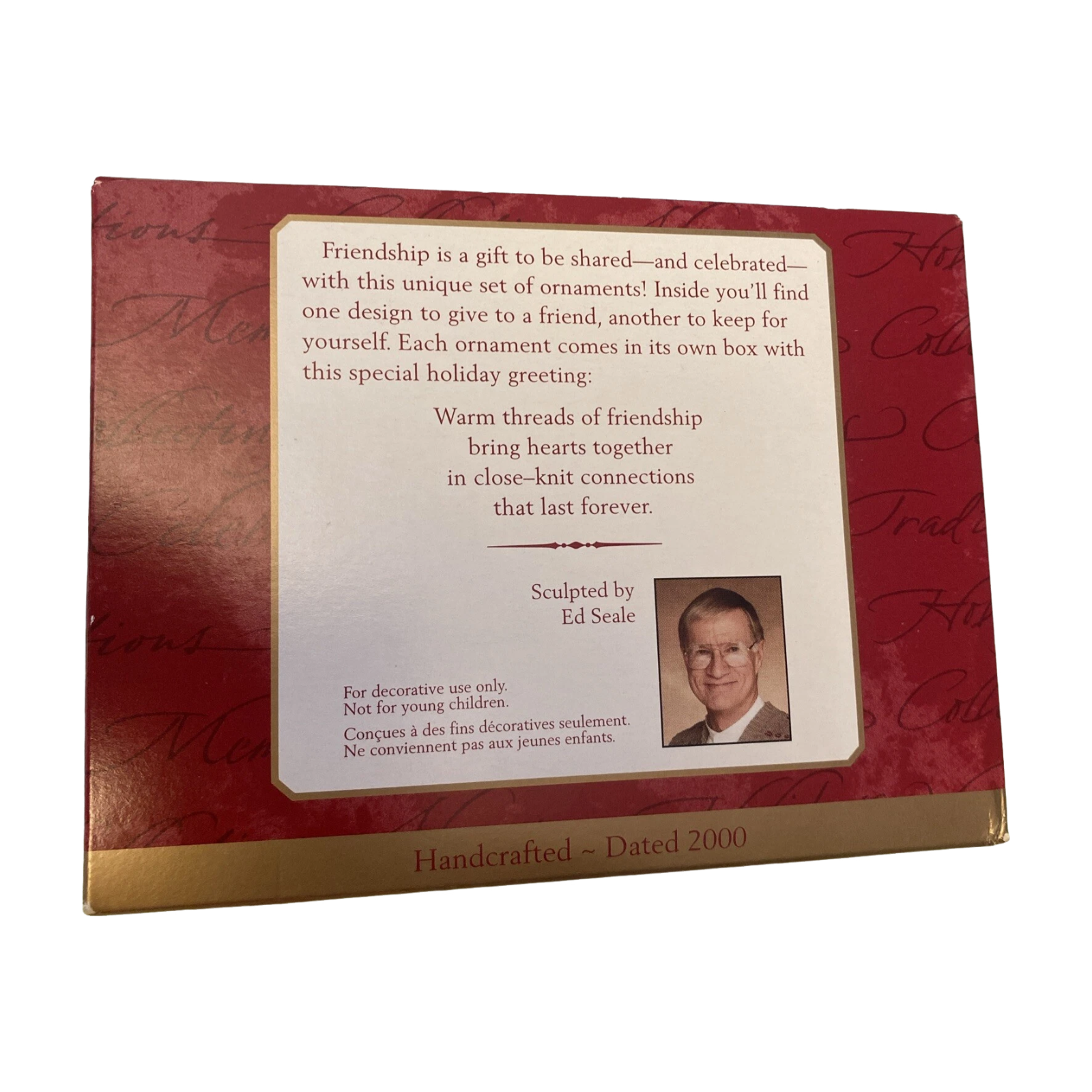Celebrate the warmth of beloved connections with this 2000 Hallmark Keepsake ornament set featuring two endearing mice nestled inside matching cozy mittens—one reads "Forever" and the other "Friends 2000." Designed by Ed Seale as a Gold Crown Exclusive, this charming duo is perfect for the time-honored "give one, keep one" tradition and comes mint-in-box with original packaging and tags. This delightful collectible requires no power, capturing hearts through its sentimental design and nostalgic appeal alone.
