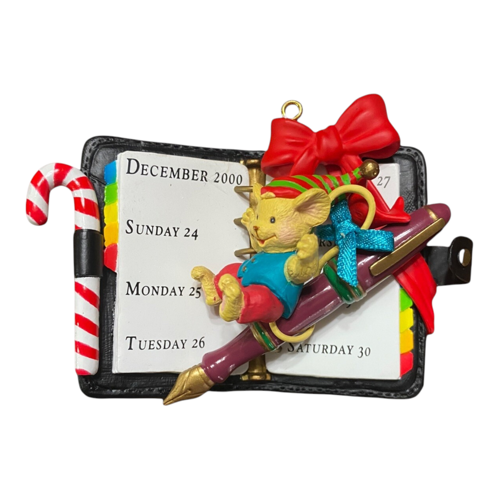 Celebrate the office holiday spirit with this 2000 edition “Co-Worker (Mouse)” ornament from the Carlton Cards Heirloom Collection. This piece features a cheerful mouse holding a pen and date book, dressed in holiday attire and ready to spread seasonal cheer in the workplace. Its bright painted finish, festive styling, and the clearly stamped year-2000 lend it both decorative charm and collectible value — especially for those building themed trees around office, mouse-motifs, or vintage holiday ornaments.