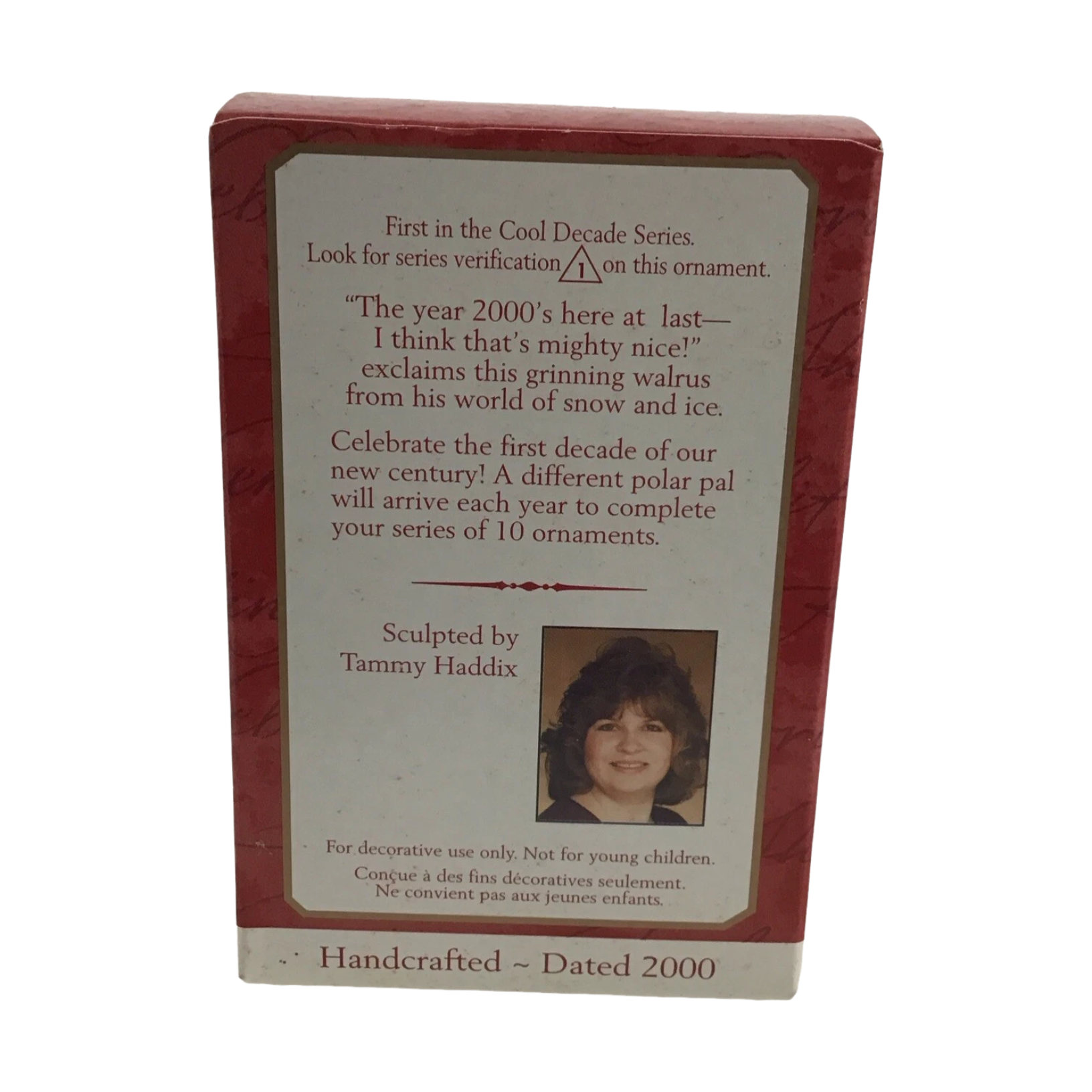 Celebrate the turn of the millennium with this adorable 2000 Cool Decade #1 – Walrus ornament—a charming start to Hallmark’s Cool Decade series. This handcrafted resin walrus, sporting a Santa hat and perched atop frosty “2000” numerals, captures the excitement of a new era. Designed by Tammy Haddix, it stands approximately 2.13″ H × 2.43″ W × 1.53″ D, arrives boxed with hang tag, and requires no batteries, cords, or lights—simply unpack and hang to mark the new millennium.