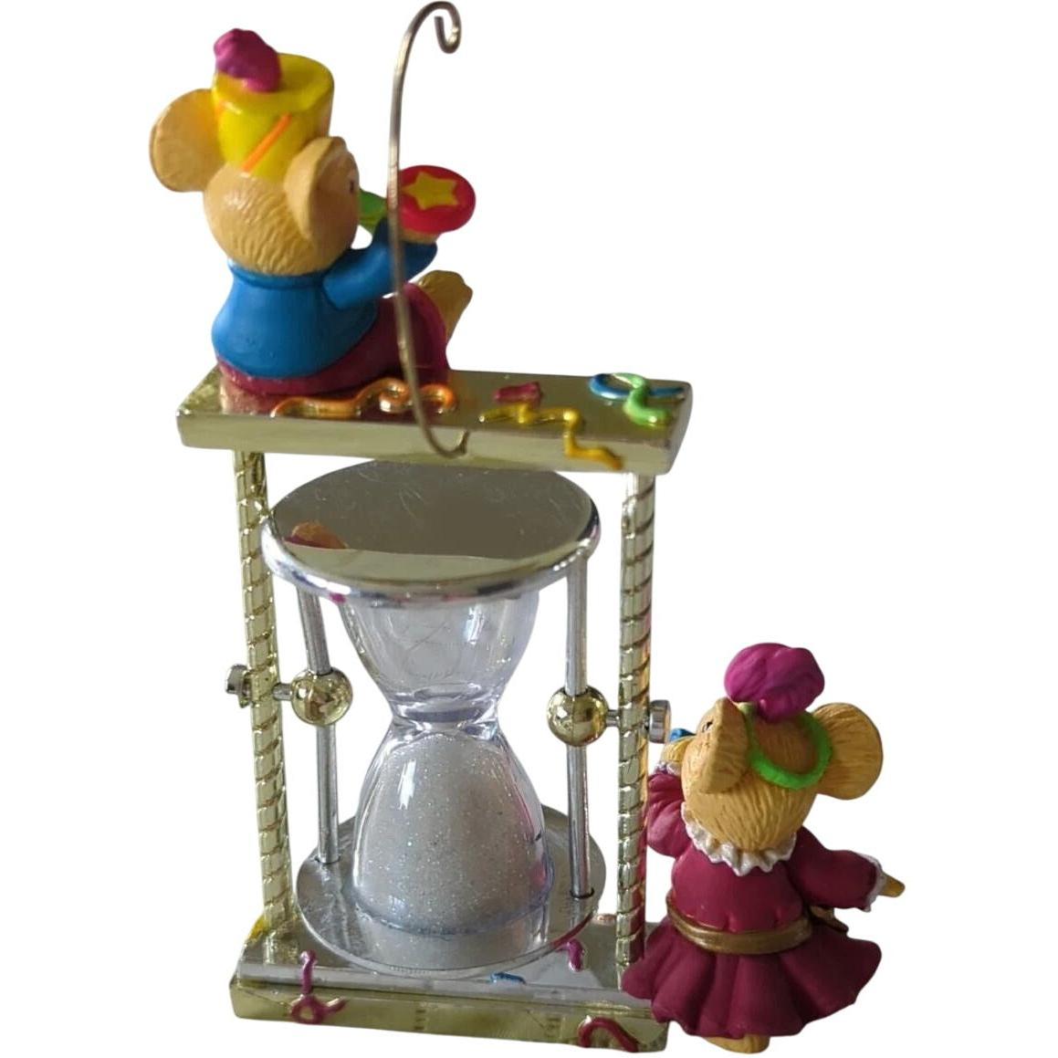 Celebrate the turn of the millennium with the 2000 Just in Time for 2000 ornament from the Carlton Cards Heirloom “Celebrate 2000” Special Edition. This festive piece features a cheerful mouse holding an hourglass marked “1999” one way and “2000” when flipped—symbolizing the Y2K-millennium countdown with whimsical charm. Bright colors, detailed sculpting and the clearly dated “2000” make it a standout for both display and collectors of Y2K or mouse-themed ornaments. Its variant SKU CXOR-302A adds collectible appeal and makes it a meaningful gift or entry into a themed collection.