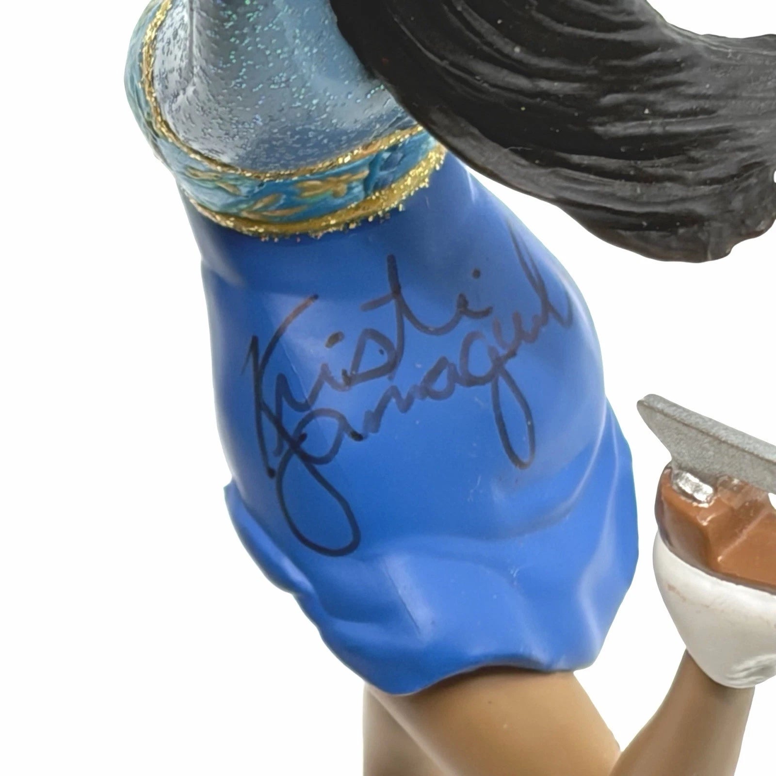 Capture the grace of Olympic figure skating with the 2000 Kristi Yamaguchi ornament, part of Hallmark’s beloved Figure Skaters series. This beautiful keepsake depicts the 1992 Olympic champion gliding elegantly across the ice in a shimmering blue dress. Sculpted by Katrina Bricker, the piece embodies motion and artistry, arriving mint-in-box with its original tag and requiring no batteries, cords, or lights.