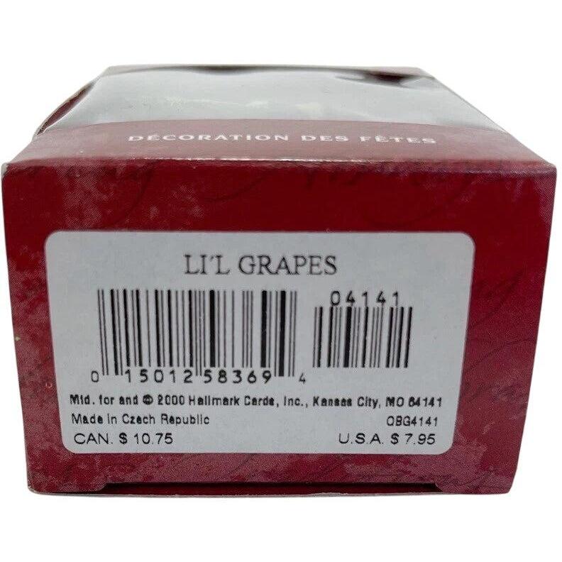 Celebrate the season with a touch of fruit-themed elegance: the 2000 Li’l Grapes ornament is part of Hallmark’s Li’l Blown Glass collection and features a cluster of purple grapes in hand-blown glass, complete with rich color and delicate clarity. The ornament stands about 2 inches tall, making it a refined, jewel-like accent for your tree.