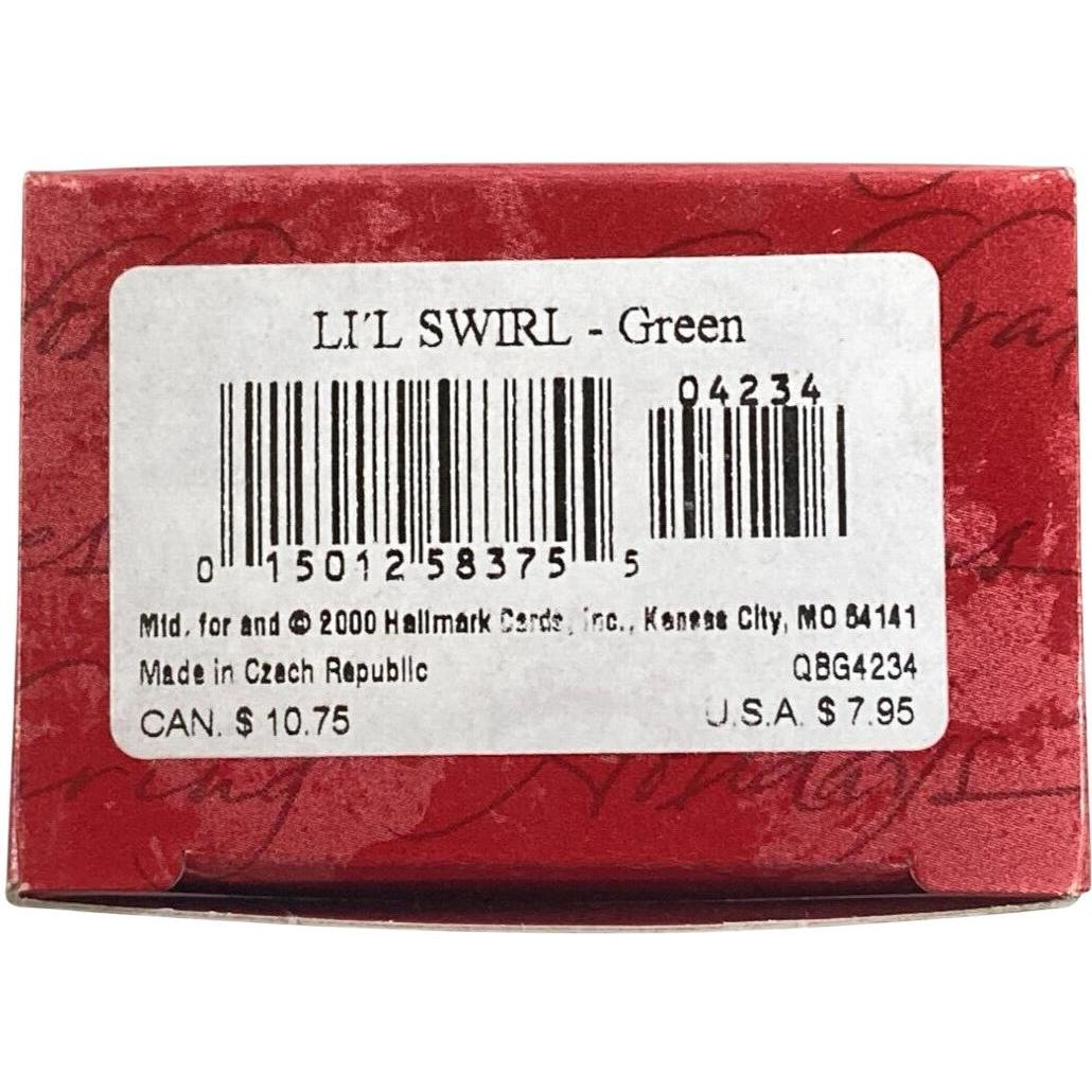 Capture the sweetness of the season with 2000 Li’l Swirl – Green, a delightful hand-blown glass ornament from Hallmark’s Li’l Blown Glass collection. Shaped like a wrapped candy with swirling green and white glass, this ornament glows beautifully on your tree. In mint or collector condition, it typically includes its original box and hanging loop. This keepsake is entirely decorative — no batteries, cords, or lighting required.