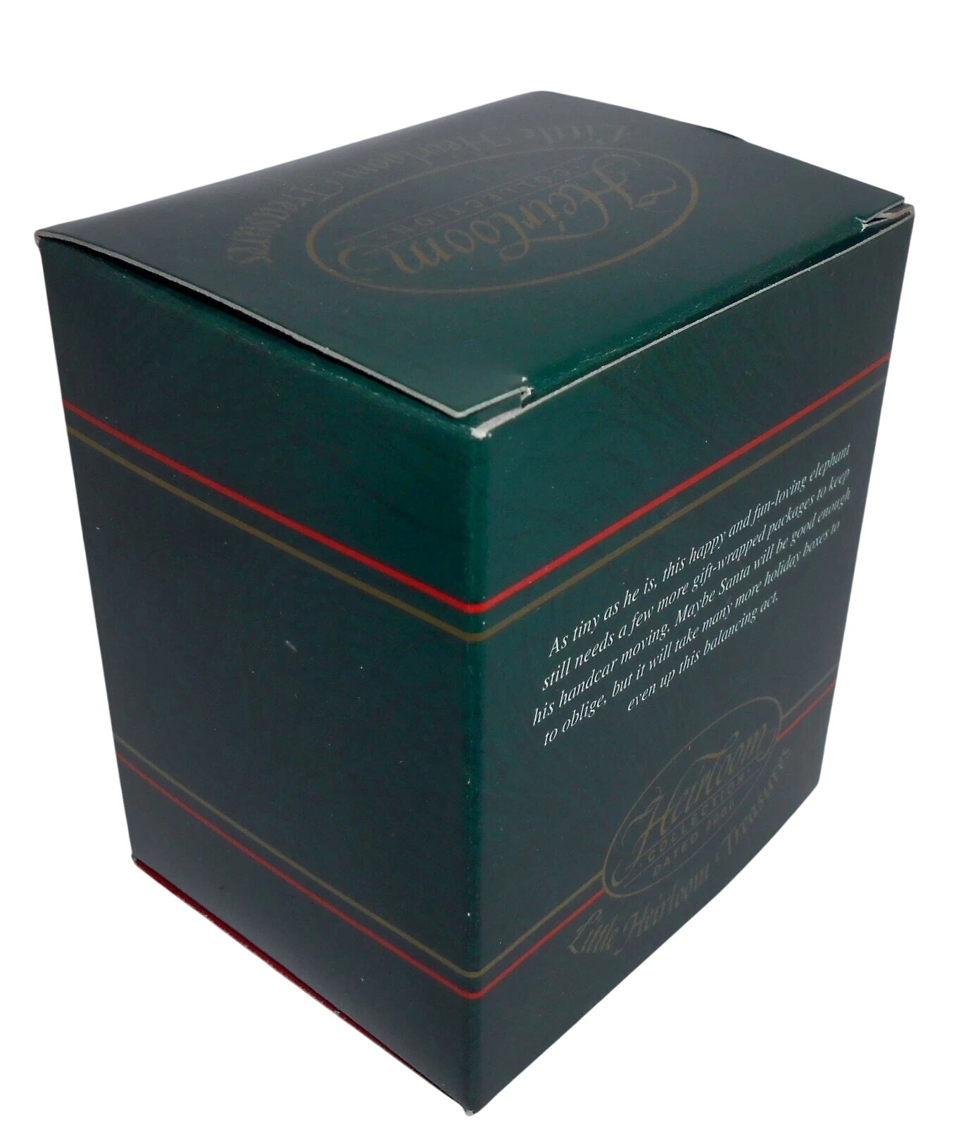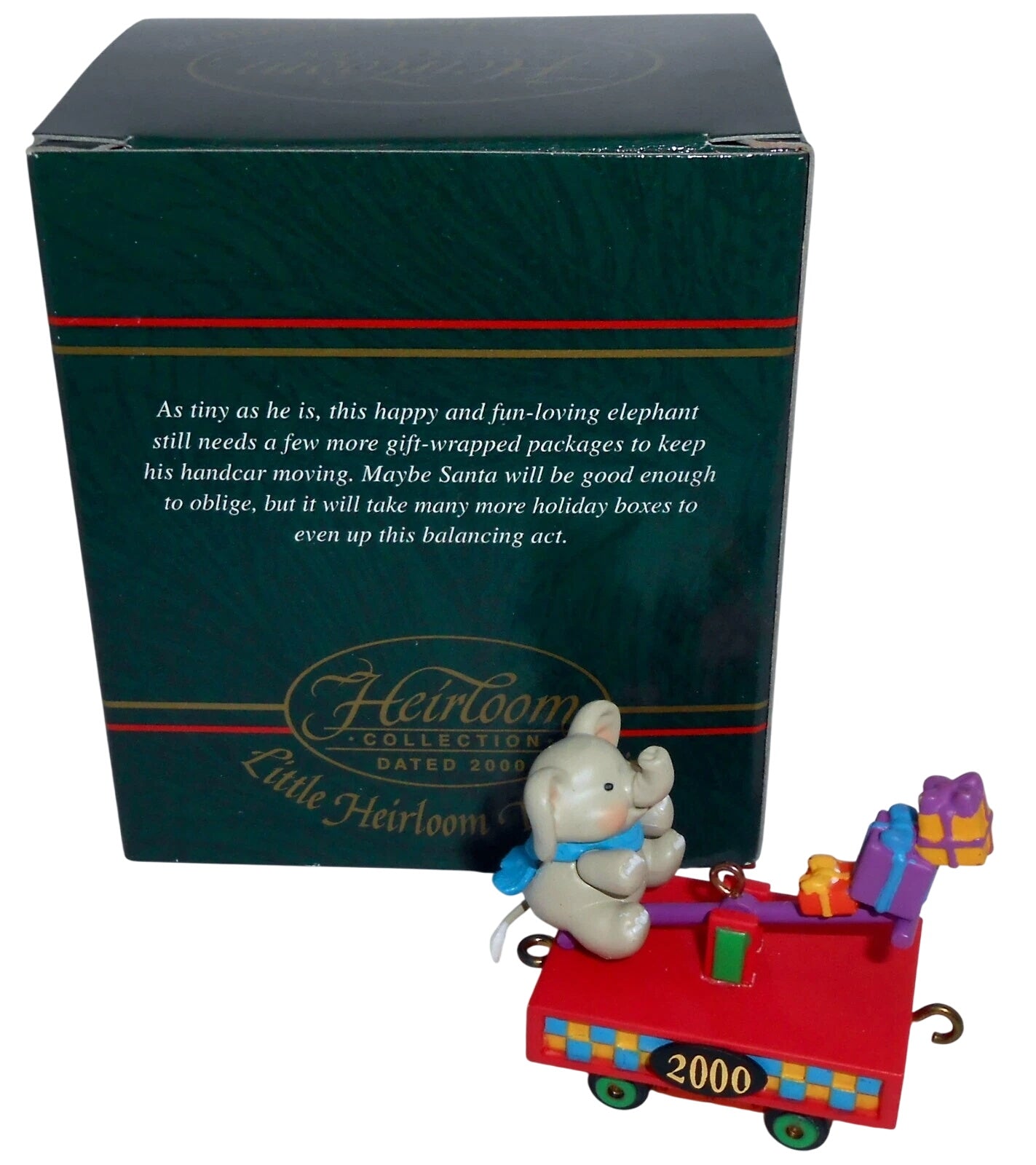 Delight in holiday nostalgia with the 2000 On Track for Christmas – Elephant ornament from Carlton Cards’ beloved Heirloom Collection. This vibrant design portrays a cheerful elephant riding atop a toy train car, decked out in seasonal accents and joyful colors. Included is the original red Carlton Cards Heirloom box with molded interior and hang‑tag for display or gifting. No batteries, cords, or light strings needed—just unbox and hang for instant festive charm.