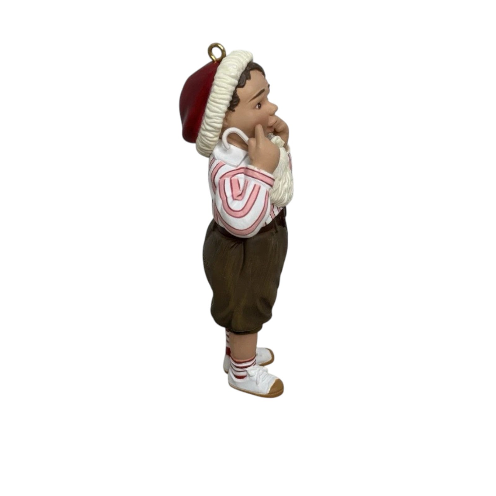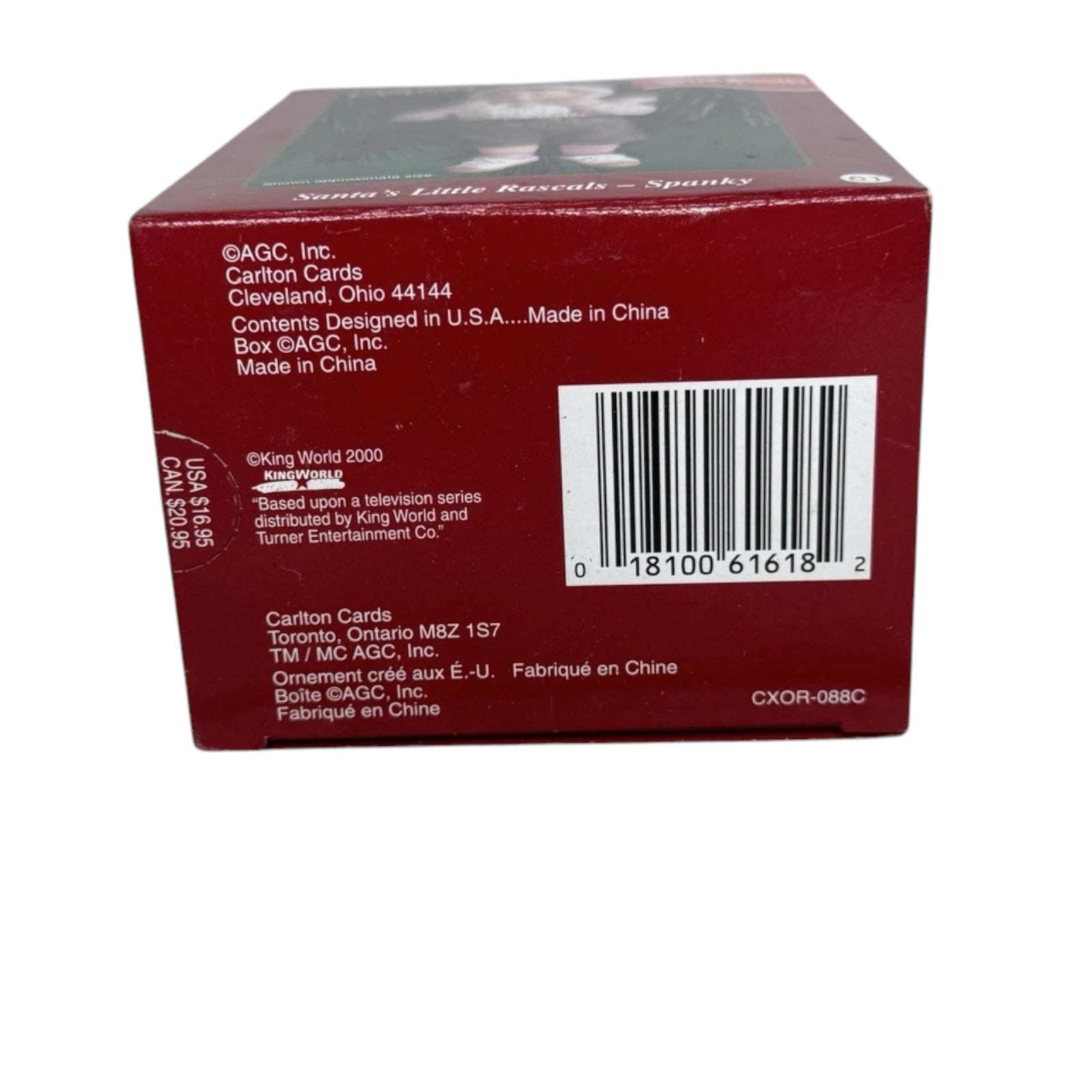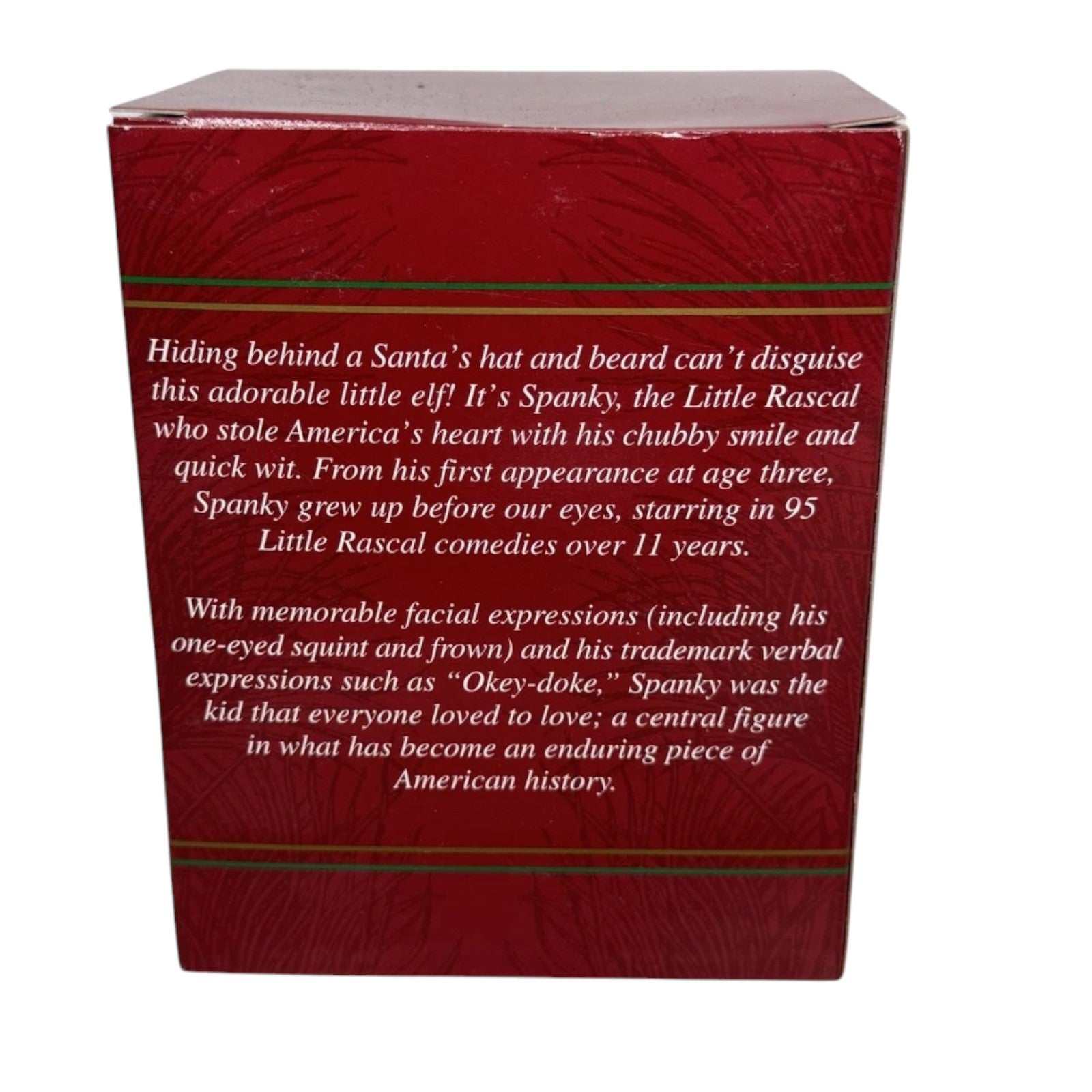 Celebrate the timeless mischief of the classic television comedy with this 2000 “Santa’s Little Rascals – Spanky” ornament from the Carlton Cards Heirloom collection. Featuring the beloved character Spanky McFarland dressed in festive holiday attire and ready for a cheerful Christmas cameo, the sculpt captures both nostalgia and collectible charm. Crafted in a multicolored finish with meticulous detailing and a holiday-themed hanging loop, it appeals to fans of the show, retro collectors, and ornament enthusiasts alike. The 2000 date and licensed movie/TV theme make this piece especially desirable for fans of pop‐culture holiday décor.