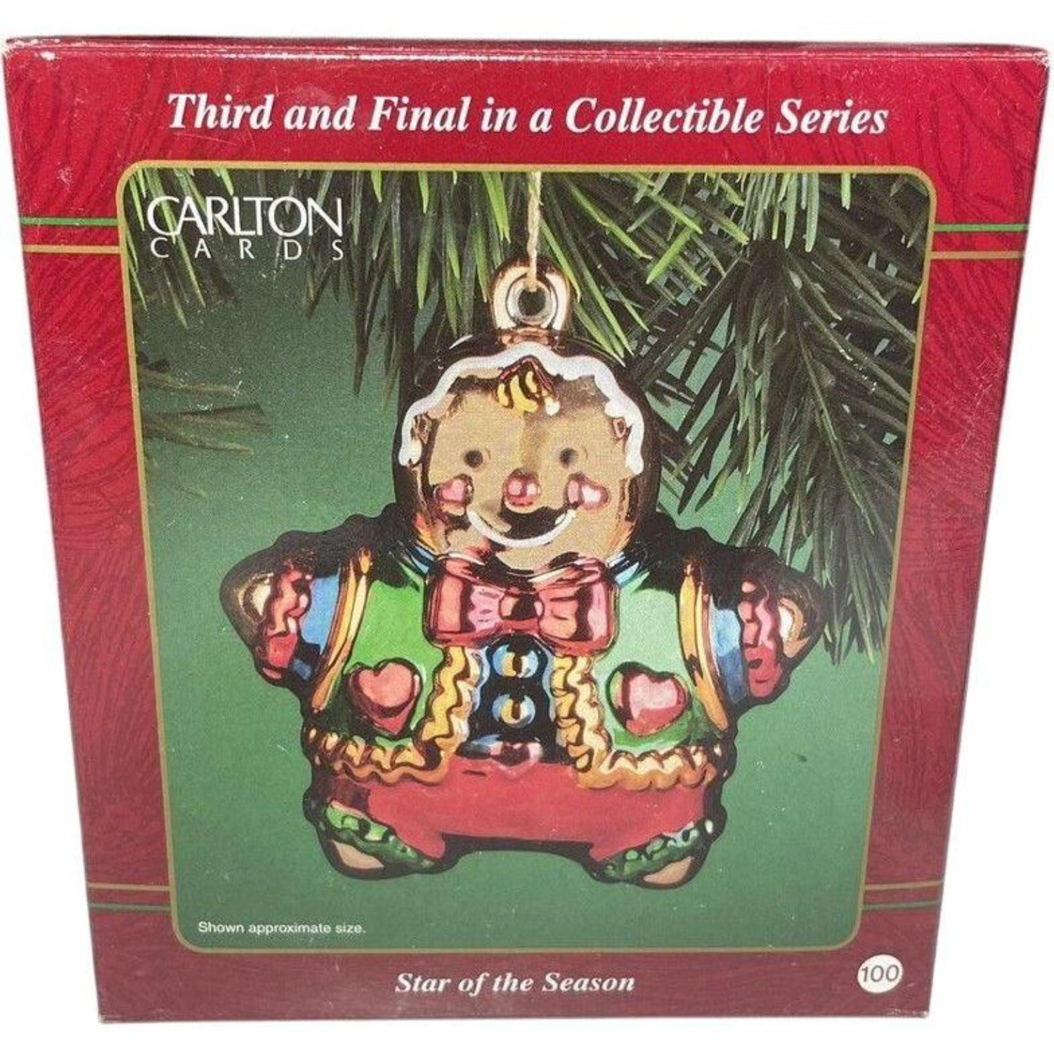 Add a sweet twist to your holiday décor with the Star of the Season (Gingerbread) ornament from Carlton Cards’ vintage series. This charming baked‑goods design takes the shape of a gingerbread star, whimsically decorated with icing detailing and festive accents—perfect for kitchens, cozy Christmas trees, or gingerbread-themed gatherings. It arrives in its original red-and-gold Heirloom Collection packaging with a clear display window and collector’s tag. No batteries, cords, or lights are required—just hang and enjoy its delectable holiday charm!