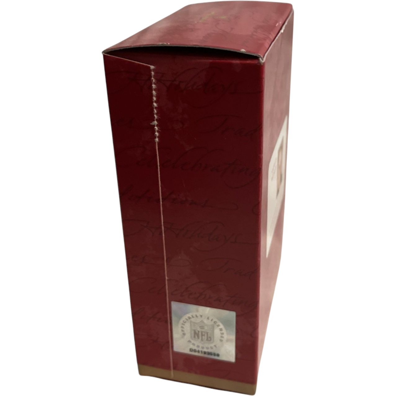 Proudly show off your Washington Redskins fandom with this ornament from the 2000 NFL Collection. The design includes a Wilson-style football resting on a small kicking tee, accented by a brass emblem of the Redskins helmet. It arrives in its original box, tagged and dated “2000.” This ornament is static — it does not require batteries, cords, light strings, or any power source to display.