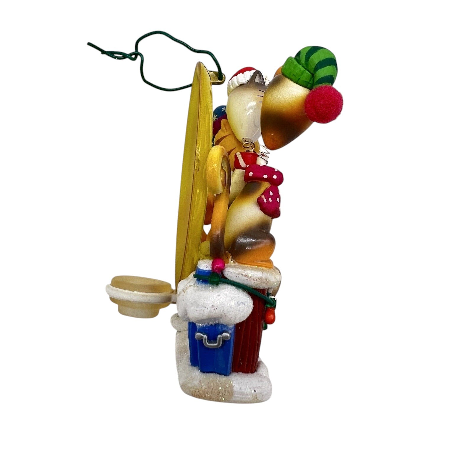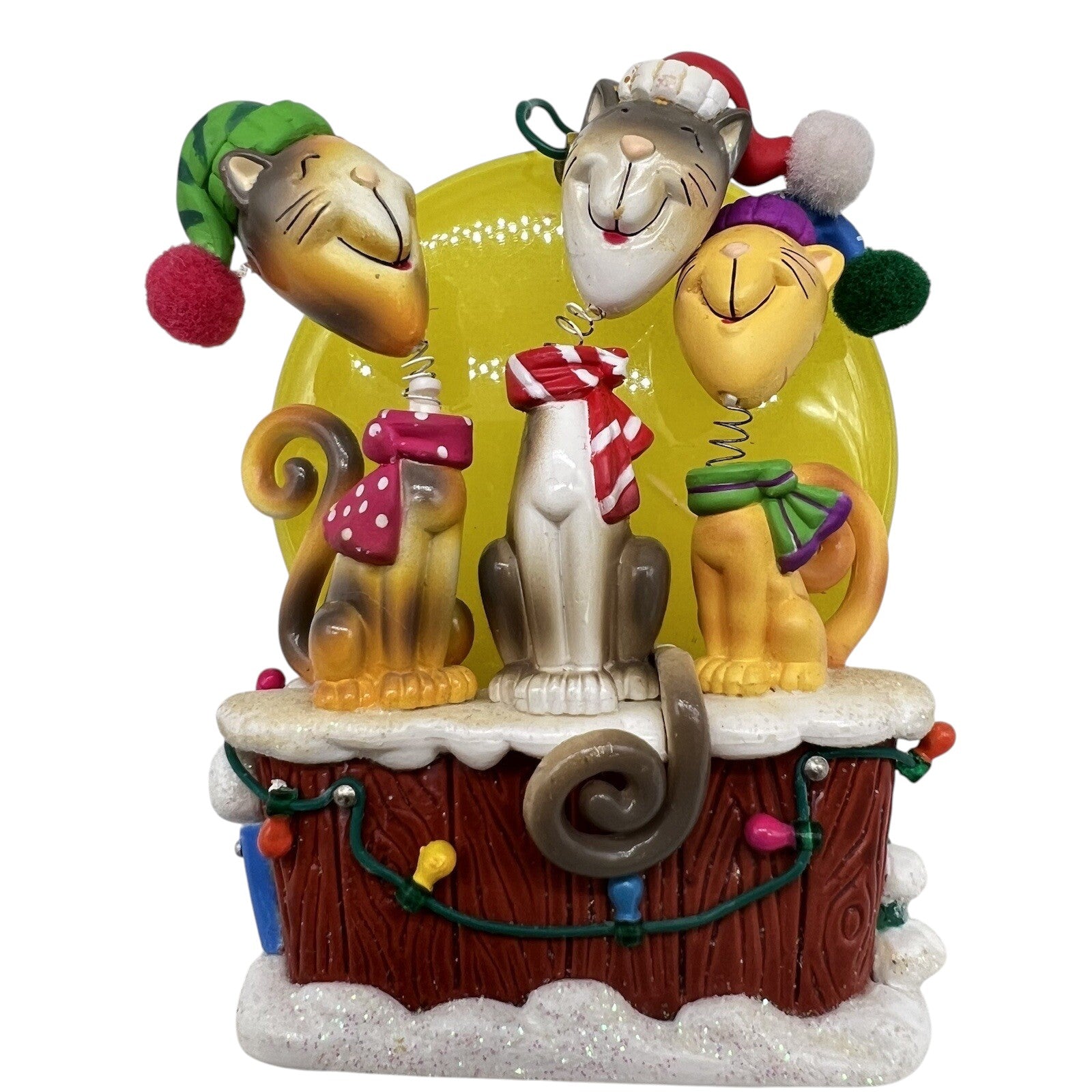 This vibrant 2001 “Alley Cat Chorus” ornament from the Carlton Cards Heirloom collection depicts three playful alley cats perched on a fence, ready to carol beneath twinkling holiday stars. Crafted in molded plastic with a multicolor painted finish, the scene includes clear design details and even a translucent back that allows light to shine through—ideal for inserting a miniature tree light to illuminate the cats as though they’re singing under moonlight. A must-have for kitten lovers, cat-theme collections or anyone seeking whimsical, expressive vintage ornaments.