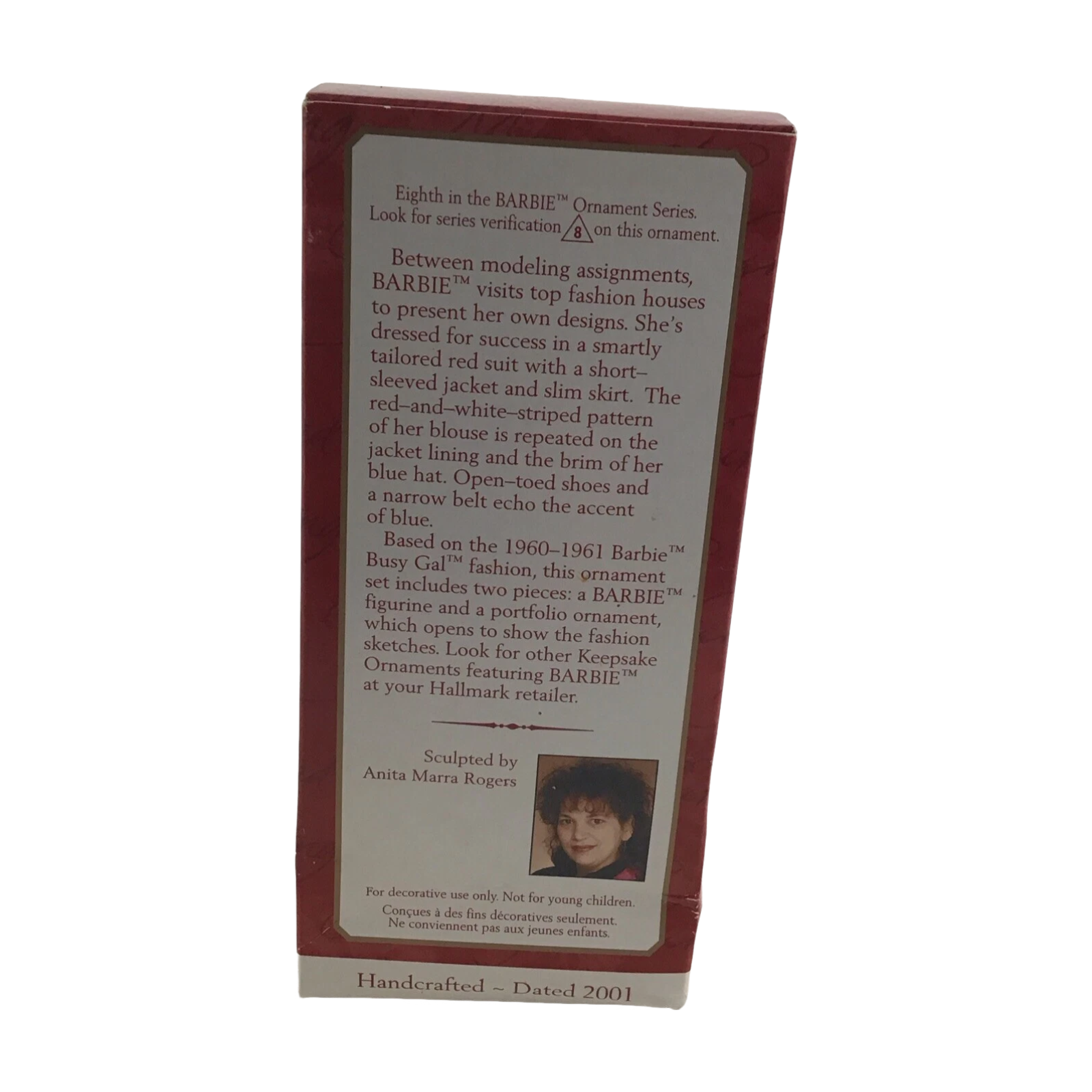 Empower your holiday décor with the 2001 Barbie in Busy Gal Fashion ornament—the eighth installment in Hallmark’s iconic Barbie Collector’s Series. Inspired by the famed 1960–1961 Busy Gal ensemble, this two-piece set includes: