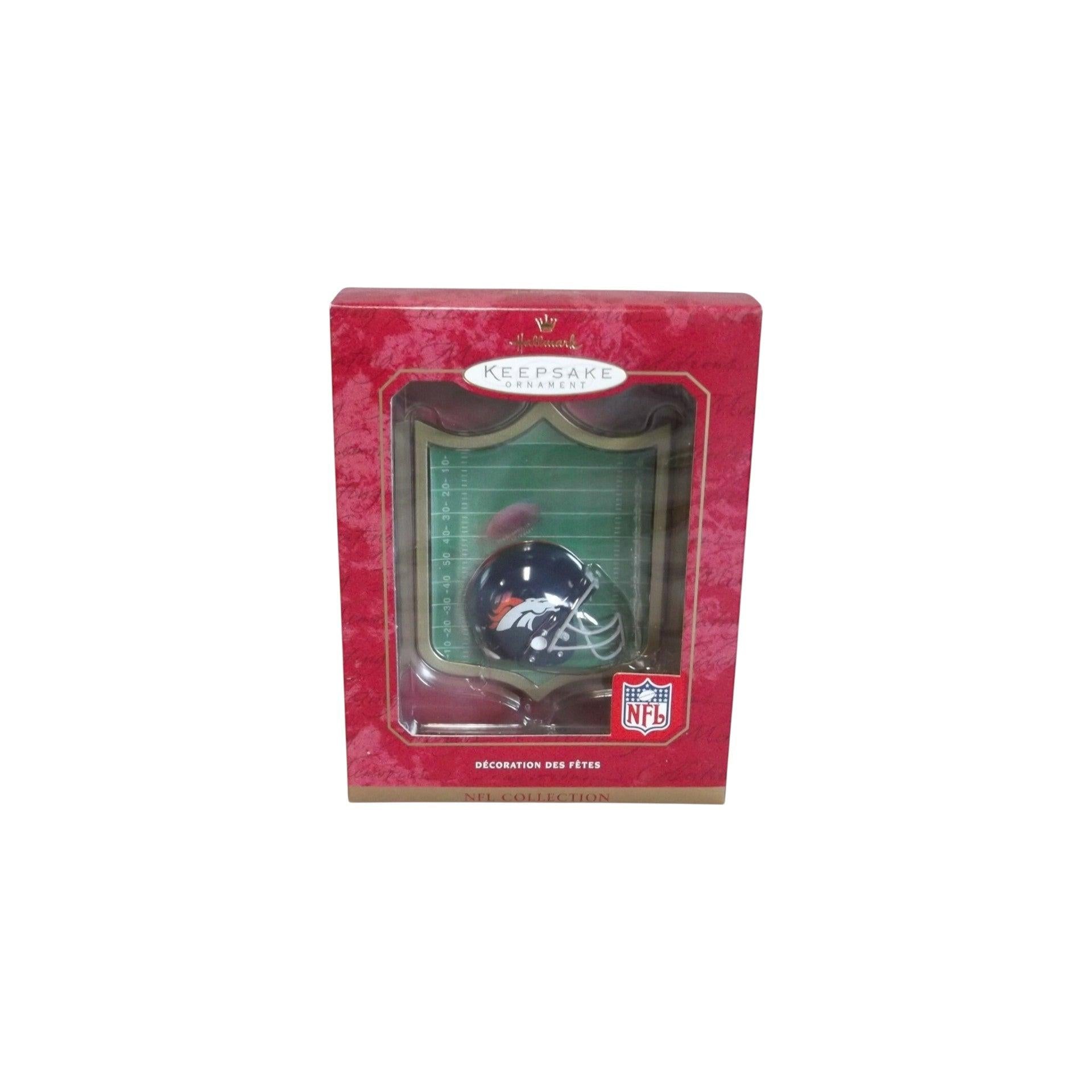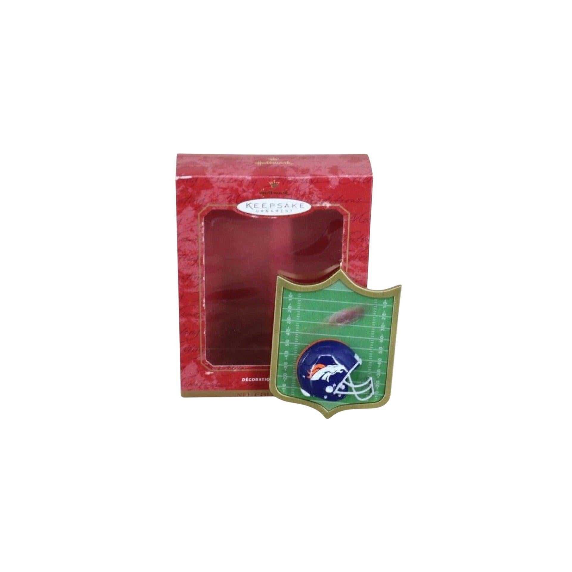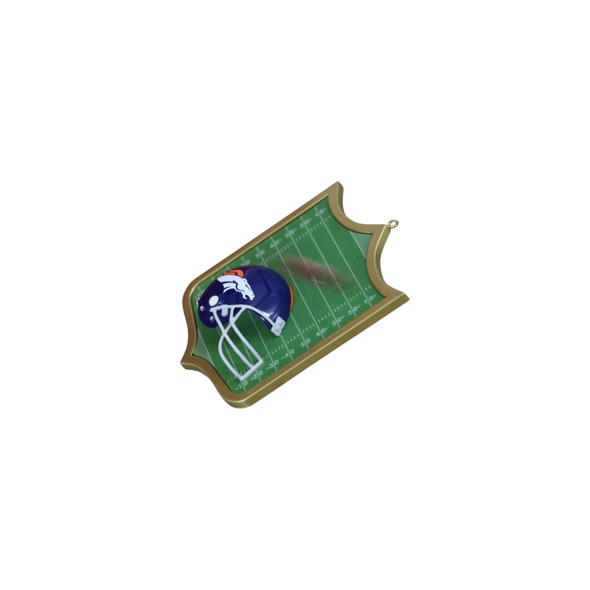 Add a touch of Broncos pride to your tree with this 2001 NFL Collection ornament featuring the Denver Broncos. The design shows a miniature football field scene with the Broncos helmet nestled in the end zone. When tilted, the ornament gives a fun illusion of the football moving across the field.