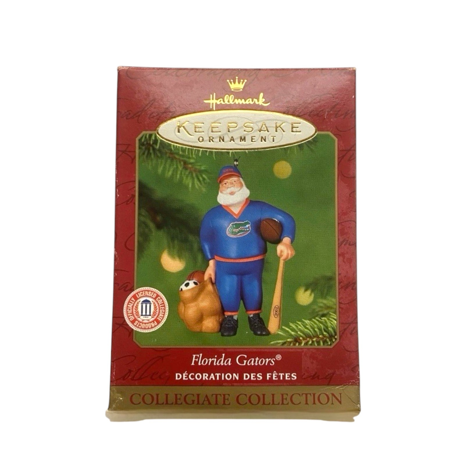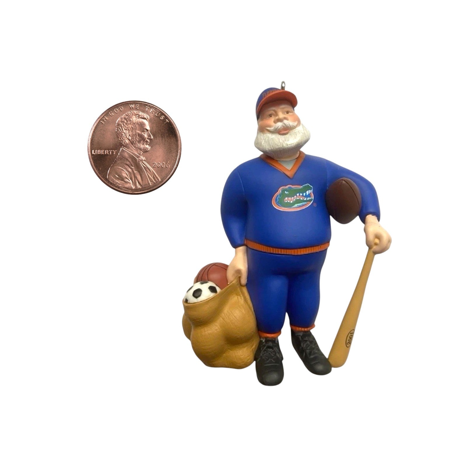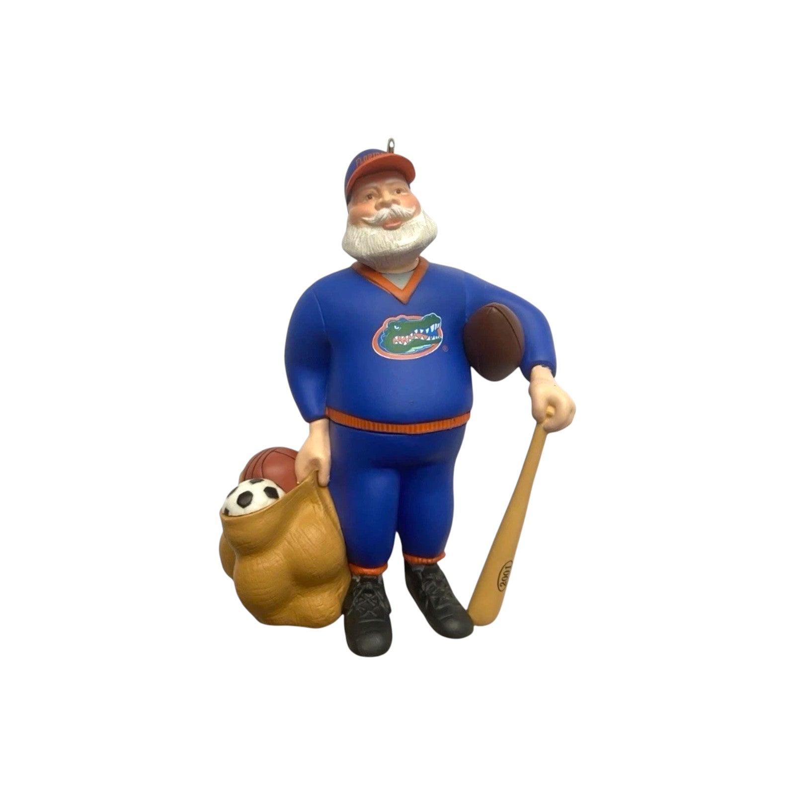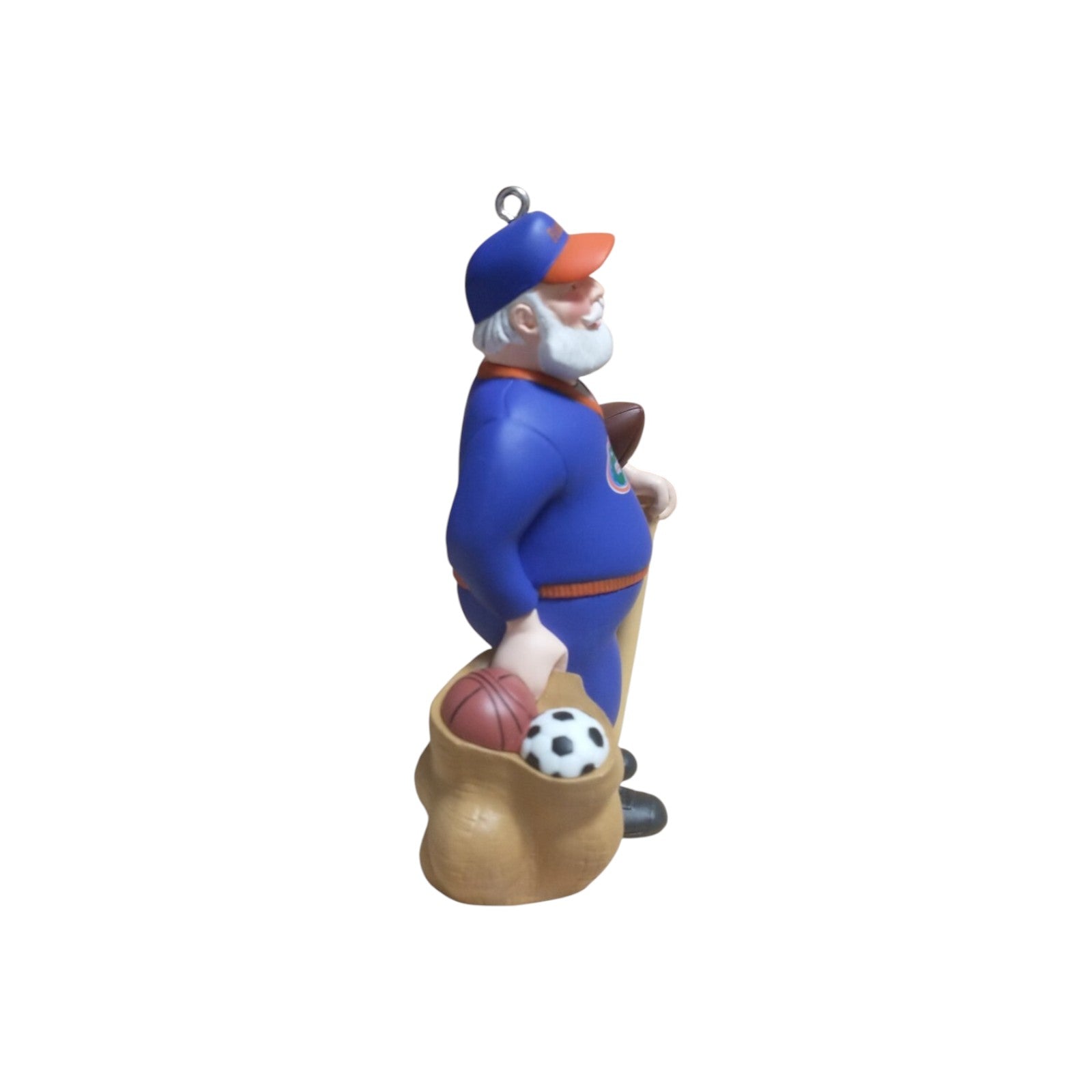 Bring Gators pride into the holiday season with the 2001 Florida Gators (Collegiate Sports) Hallmark Keepsake ornament. This festive collectible features Santa dressed in a Florida Gators sweatsuit and cap, holding a football and baseball bat while carrying a sack of assorted sports balls—all emblazoned with the iconic Gators logo—perfect for any college athletics fan. Designed by Dill Rhodus, this ornament is made from mixed materials and comes in its original box with a hanging loop for simple, vibrant display. No batteries or external power are needed—just hang and enjoy!
