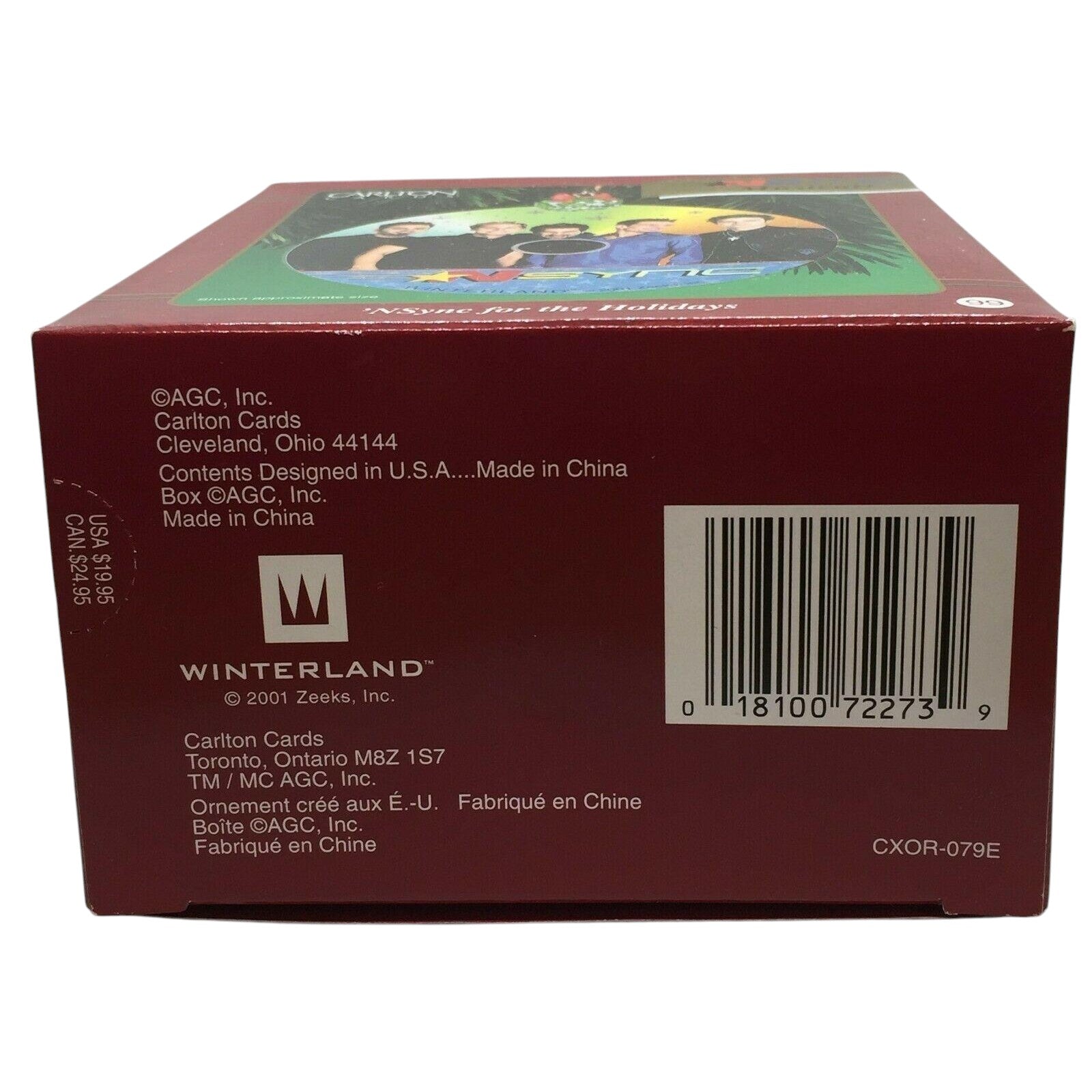 Celebrate the holiday season with this energetic 2001 musical ornament featuring the iconic pop-group NSYNC. The ornament is shaped like a decorative disc depicting the band under mistletoe and plays their holiday hit “Merry Christmas, Happy Holidays.” With its vibrant graphic design and built-in audio module, it stands out as a unique fusion of music fandom and holiday décor. Ideal for collectors of licensed character ornaments, early 2000s pop culture, or musical holiday themes, this piece adds both nostalgia and fun to the tree.