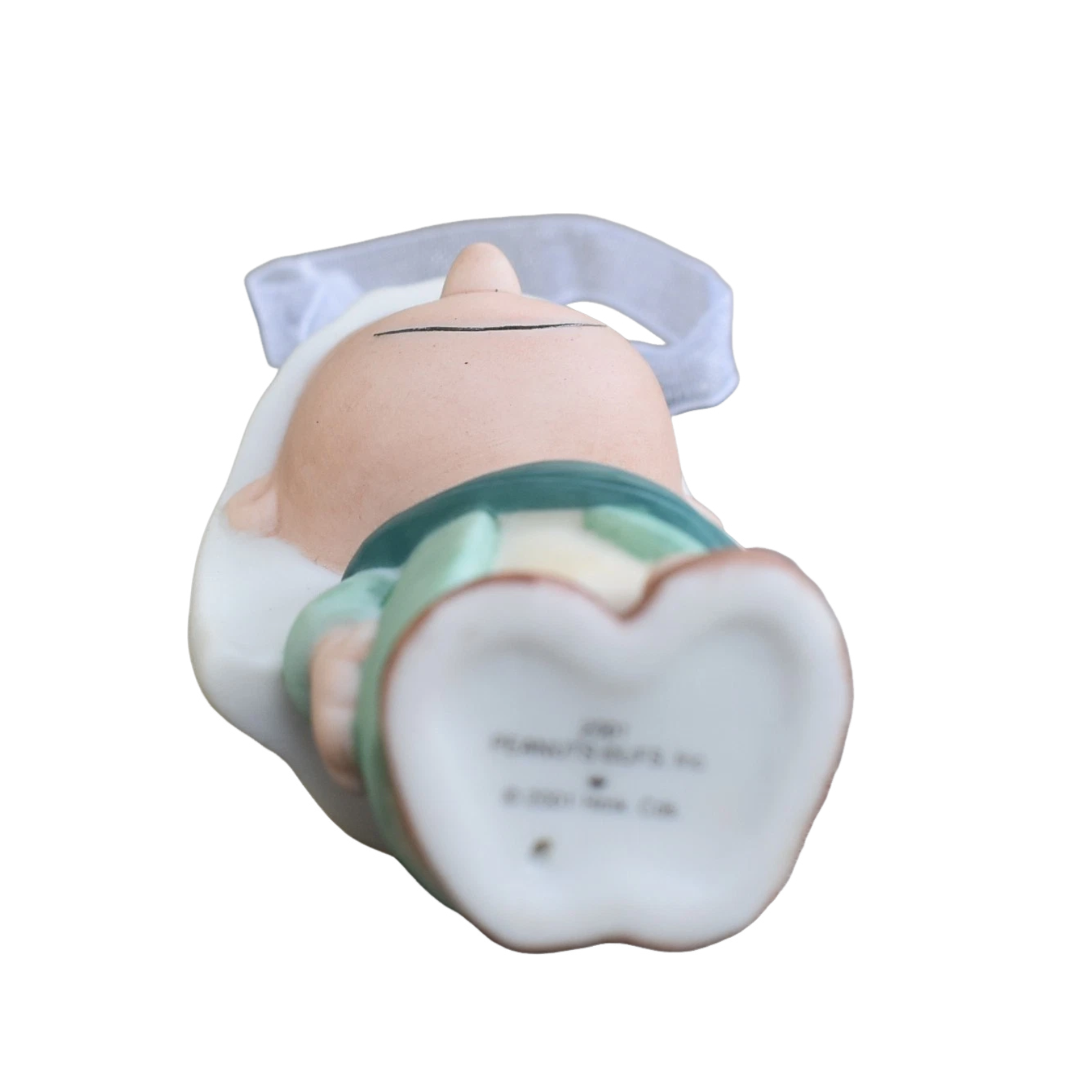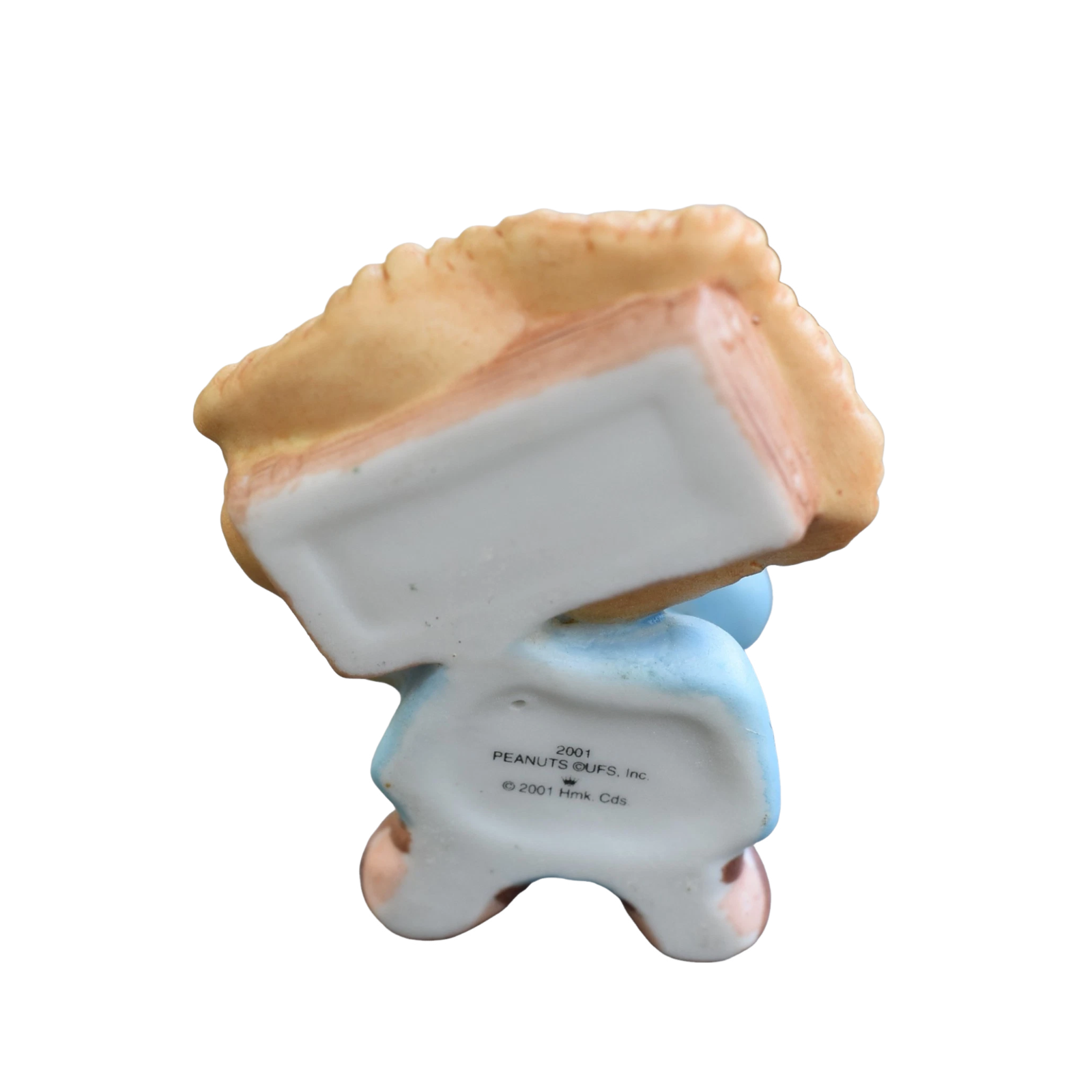 This 2001 keepsake from Hallmark titled Peanuts Pageant (model QX2832) features beloved characters from the Peanuts gang in a charming holiday pageant scene. The set includes two porcelain ornaments: one of Charlie Brown as Joseph (approx. 3 ¼" high) and one of Lucy Van Pelt as Mary (approx. 3" high). The piece blends comic-strip nostalgia with the traditional nativity theme—Charlie Brown and Lucy “star in this year’s Christmas play, as they honor the true meaning of this happy holiday!” Crafted in fine porcelain and released under the Peanuts collection, it holds sentimental as well as collector appeal.