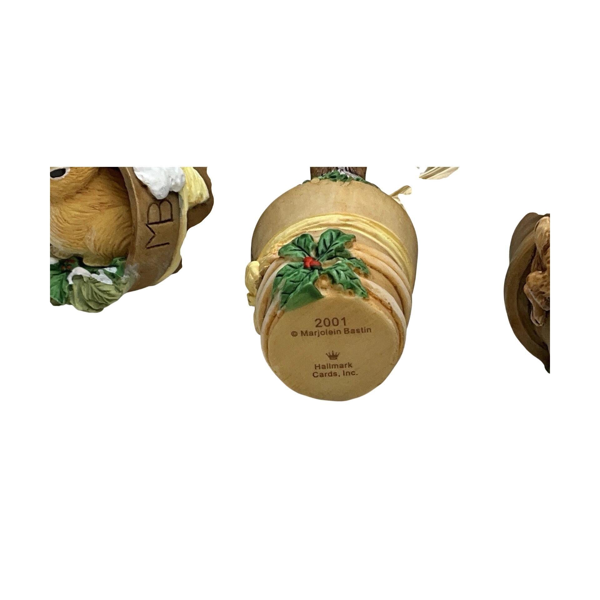 This 2001-dated ornament set from the Hallmark Keepsake “Nature’s Sketchbook” collection by the renowned artist Marjolein Bastin features three charming garden bunnies, each poised within or beside a flowering plant pot. The delicate hand-painted resin figures measure approximately 2″ high by 1½″ deep and capture Bastin’s signature botanical-inspired style with soft pastel tones and gentle, nature-themed details. Ideal for collectors of miniature sets, spring or Easter décor, animal-themed ornaments or those building out the Nature’s Sketchbook series—this set offers whimsical garden charm and collectible appeal from the early 2000s.