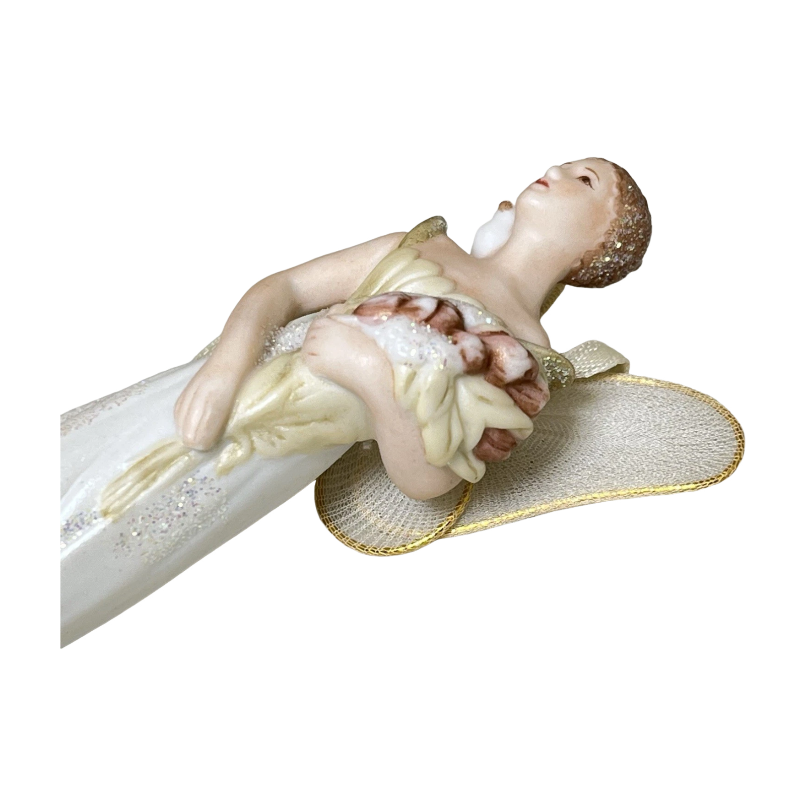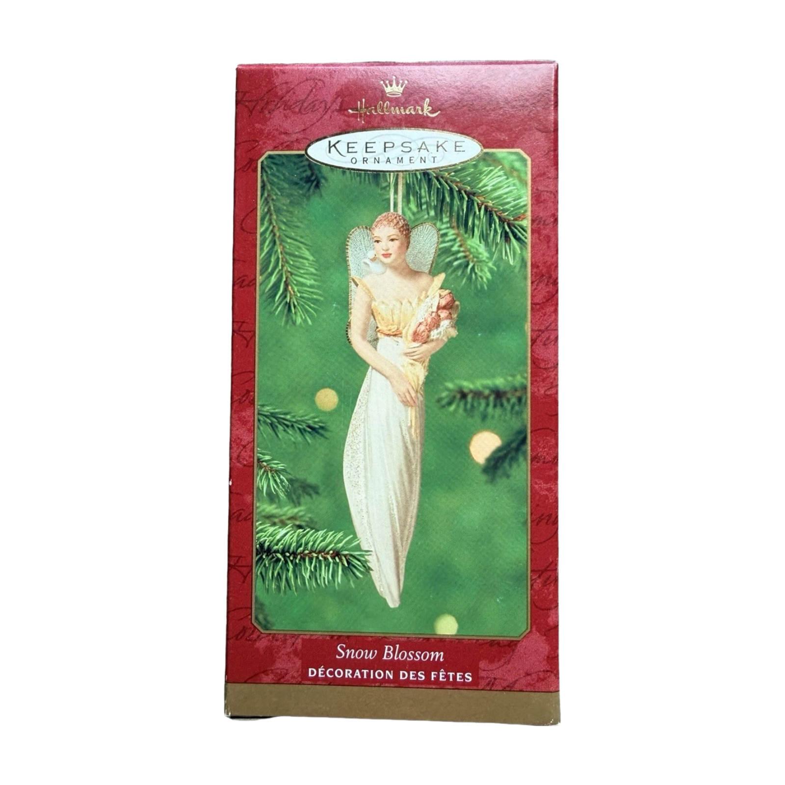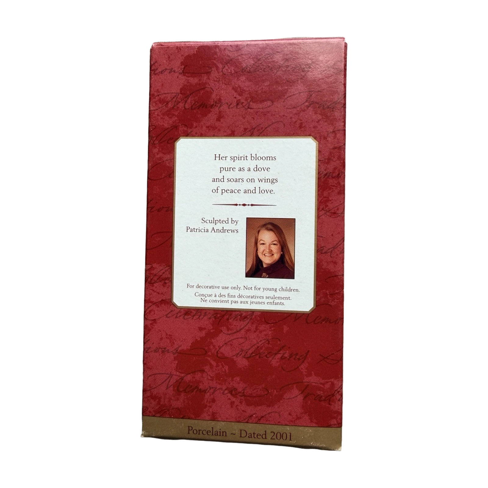 Infuse your holiday décor with the serene charm of winter’s bloom with the 2001 Snow Blossom (Angel) keepsake. This refined porcelain angel is accented with floral and snowflake motifs in soft hues, creating a visual harmony of grace and seasonal beauty. Its tall, elegant stance makes it a standout ornament that complements both traditional and contemporary tree themes.