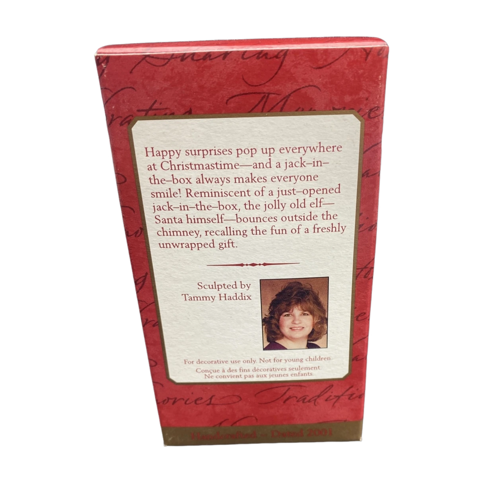 Add some playful holiday fun with the 2001 “Springing Santa” keepsake from Hallmark. This ornament features Santa Claus popping up like a jack-in-the-box — arms wide, grinning, ready to surprise. The multicolored design includes Santa’s classic red suit and white beard, contrasted by the spring base and striped box motif that evokes a toy chest surprise. It’s a charming whimsical piece, perfect for collectors who appreciate humour and movement in their holiday décor. As a dated 2001 ornament with model number QX8085, it’s especially collectible for Hallmark aficionados and Santa-theme fans.