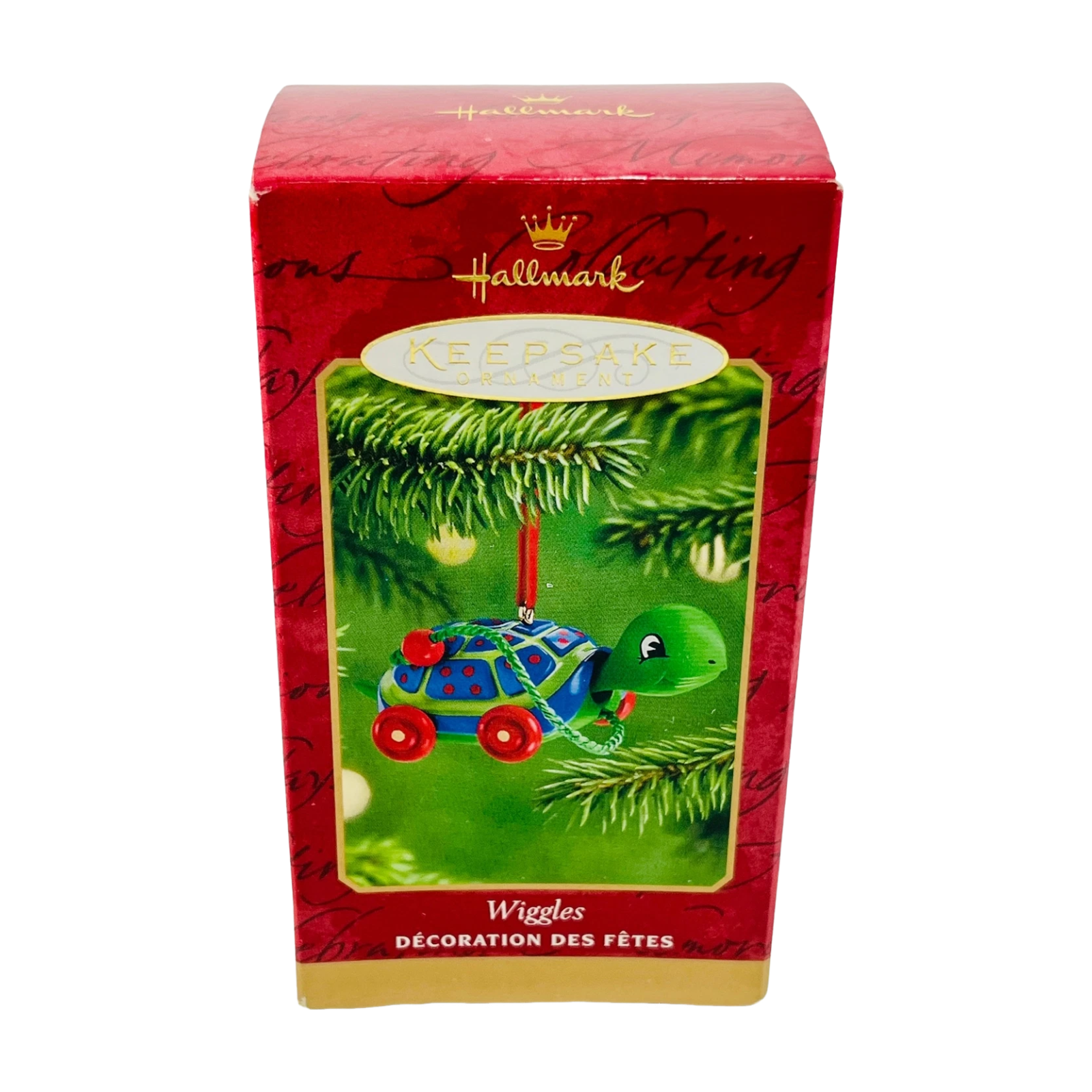 Capture a touch of childhood whimsy with 2001 Wiggles (Wooden Pull Toys), a charming keepsake from Hallmark’s wooden pull toy series. This ornament features Wiggles the turtle in classic pull-toy style: made of painted wood, with wheels that turn manually and a string or cord to “pull” (for display or play). The package typically includes the ornament itself, original box, and Hallmark keepsake tag (memory card).