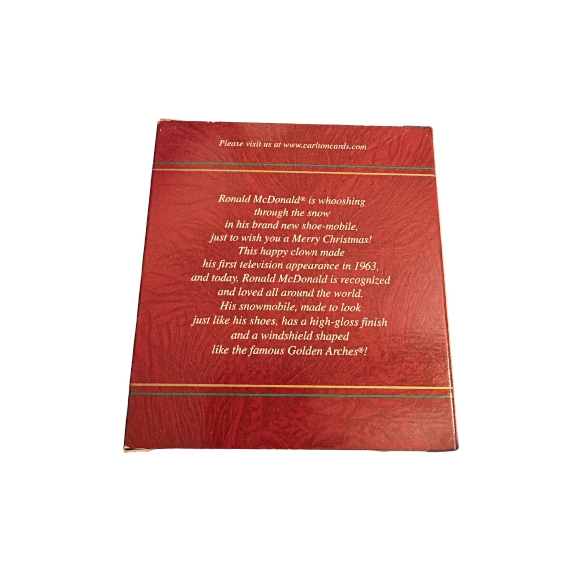 Capture the cheerful spirit of family outings and childhood memories with this 2002 “100 Smiles an Hour (McDonald’s)” ornament from Carlton Cards’ Heirloom Ornament Collection. The ornament celebrates the iconic McDonald’s brand with a festive twist — typically featuring recognizable characters, the golden arches, or playful McDonald’s theme elements in a holiday presentation.