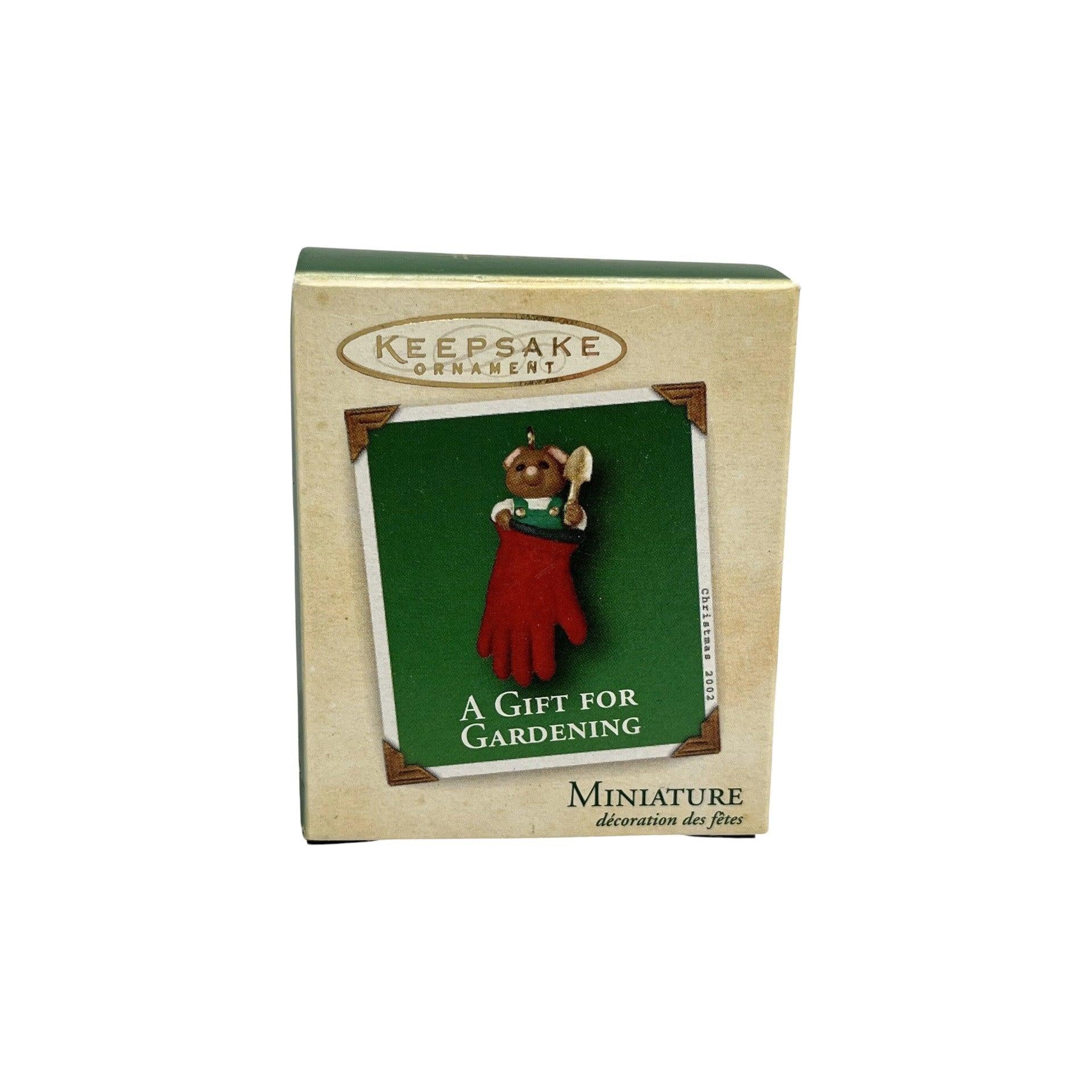 This 2002 ornament features a charming teddy bear design themed around gardening, titled A Gift for Gardening. The ornament typically depicts a lovable bear surrounded by garden elements such as flowers, pots, or tools, blending Hallmark’s classic teddy bear style with a nature-inspired hobby theme. Its warm, cheerful design makes it an ideal gift for gardening enthusiasts and teddy bear collectors alike. The ornament usually comes packaged with its original Hallmark box and is intended for decorative display only. It does not include lights, motion, or sound features and therefore requires no batteries, cords, or light strings.