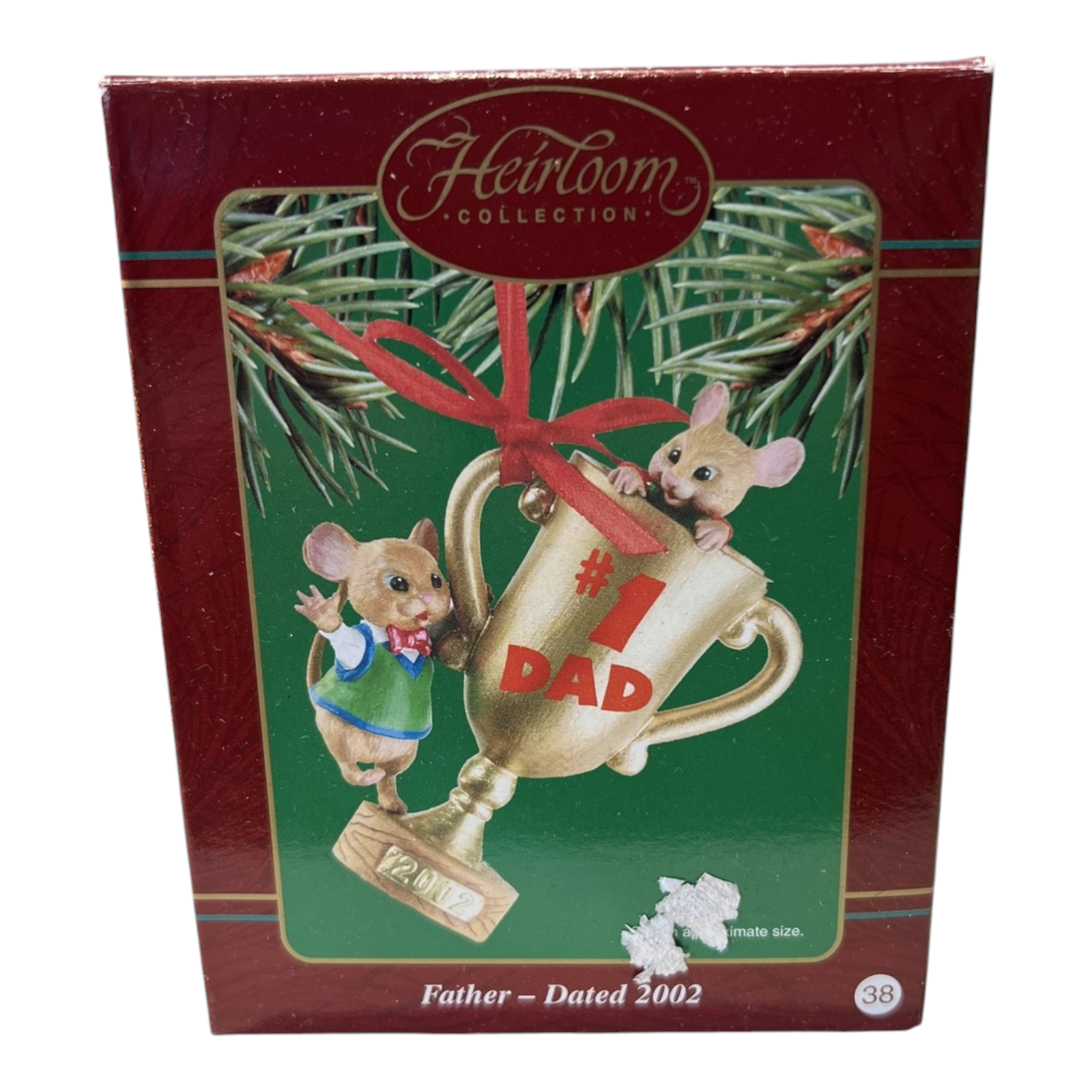 Celebrate the special role of fatherhood with the 2002 “Father (Family)” ornament (SKU CXOR-036G). This keepsake from Carlton Cards’ Heirloom Collection features a thoughtfully designed motif honoring dad—rendered in sculpted resin/plastic with festive holiday detailing, warm colors and a hanging loop ready for display. With its timeless sentiment and collectible craftsmanship, it’s an ideal addition to a family-themed Christmas tree, a meaningful gift for Dad, or a treasured piece for vintage ornament collectors.