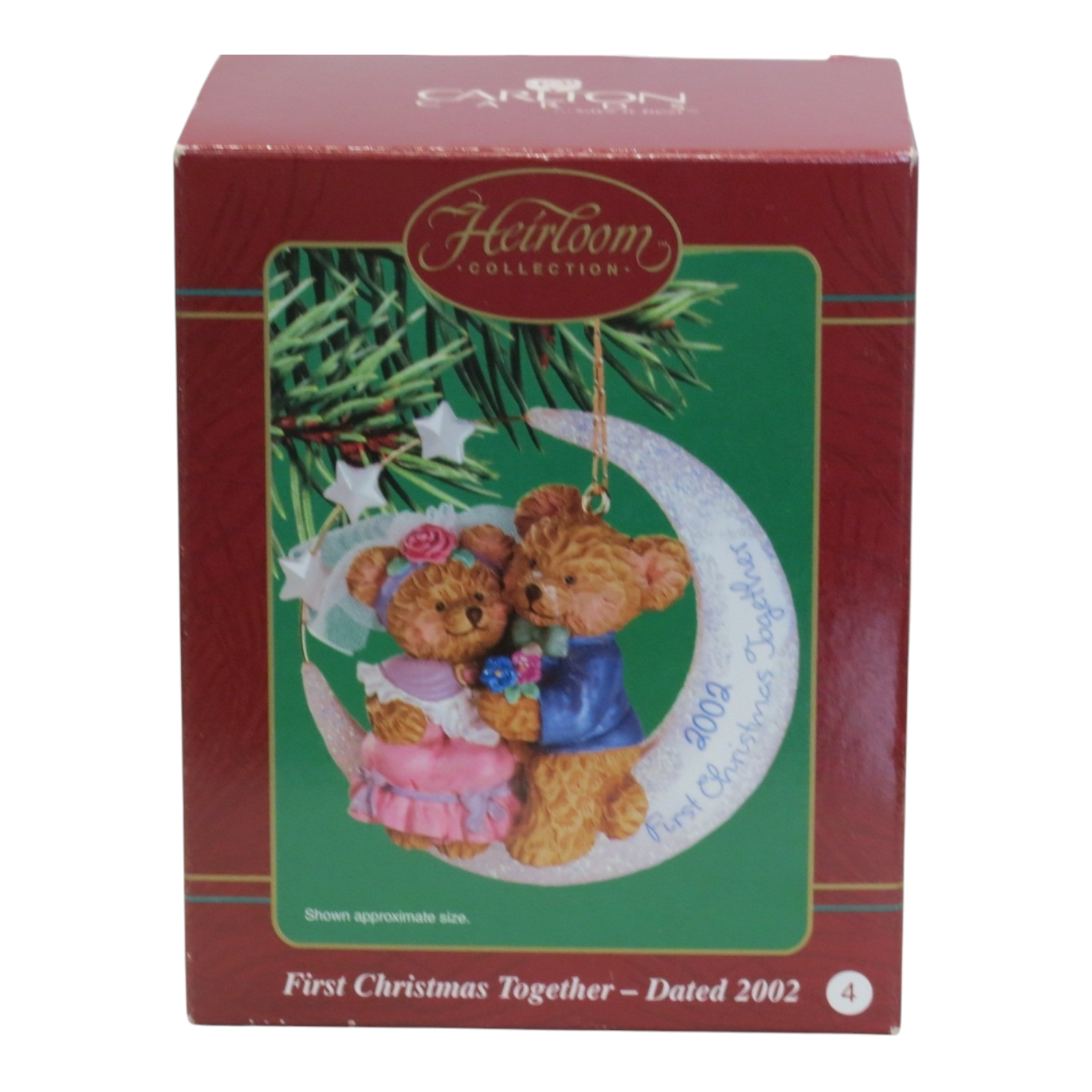 Celebrate a couple’s first holiday together with this thoughtful “First Christmas Together” ornament, SKU CXOR-007G, crafted by Carlton Cards. The design features heart-shaped motifs, entwined ribbon accents, and subtle holiday greenery—rendered in finely molded resin or plastic with a soft multicolour finish for timeless appeal. It’s part of the Heirloom collection and makes a perfect keepsake for newly-weds, partners commemorating their first Christmas together, or collectors of sentimental holiday décor. With its compact size and elegant details, it beautifully captures the warmth of that inaugural shared festive season.